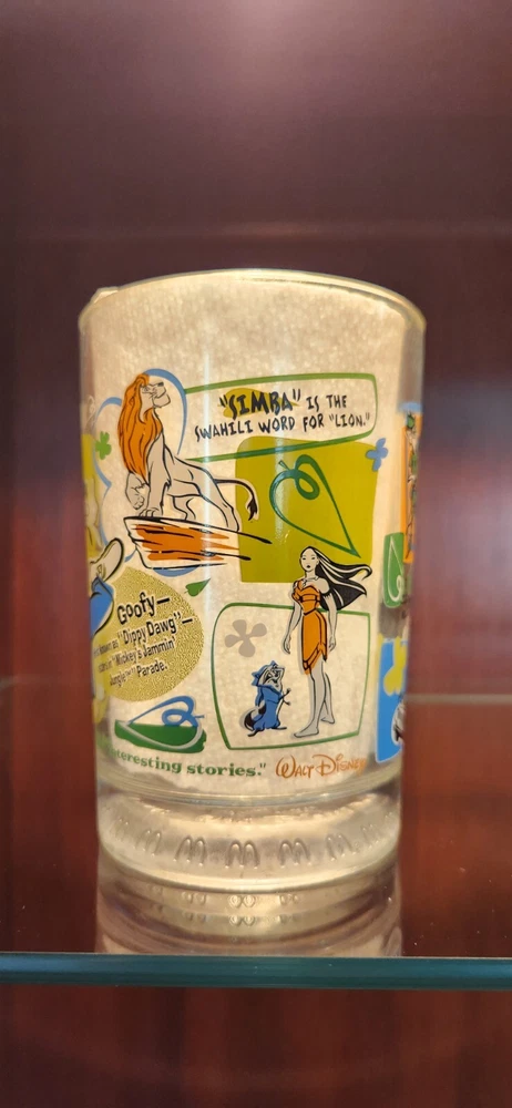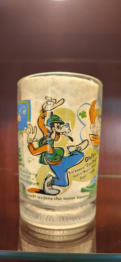 Celebrate a century of enchantment with the McDonald's Collectable 100 Years of Magic Character Glass featuring the lovable character Goofy. This limited-edition piece is part of a series commemorating Disney's storied legacy, including iconic figures like Mickey Mouse and Pocahontas. Crafted from glass and standing at 5 inches tall, this collectible showcases Goofy in stunning clarity, making it a delightful addition to any Disney enthusiast's collection.Issued in 2001 as a tribute to the Disney 100 Years of Magic celebration, this vintage glass is a treasure for both its artistic value and nostalgic appeal. It is an English-language piece, manufactured in the United States, and is a must-have for fans of Disney classics like 'Pocahontas' and 'The Lion King.' Add a touch of whimsy to your home or office with this charming representation of Disney's rich animated heritage.