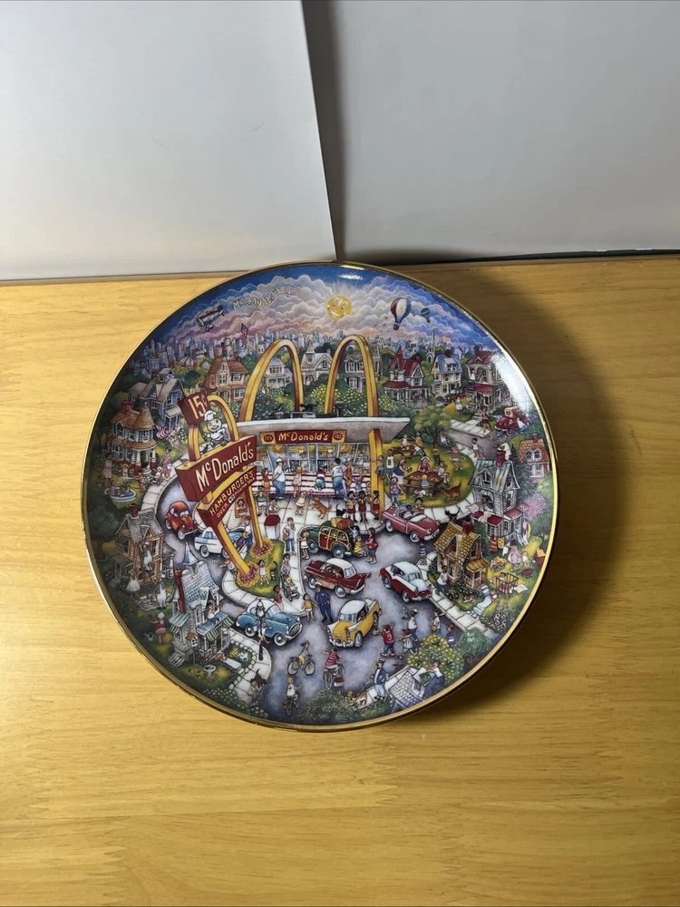 This collector plate by Bill Bell features a beautiful multicolor design on fine porcelain, commemorating special times with a vintage touch. The plate is part of the McDonald's Golden Moments collection, produced in the late 20th century using art pottery techniques. It's a perfect addition to any decorative collection, celebrating American culture and history. The plate is made in the United States and is part of the Early American Prescut/EAPC product line.