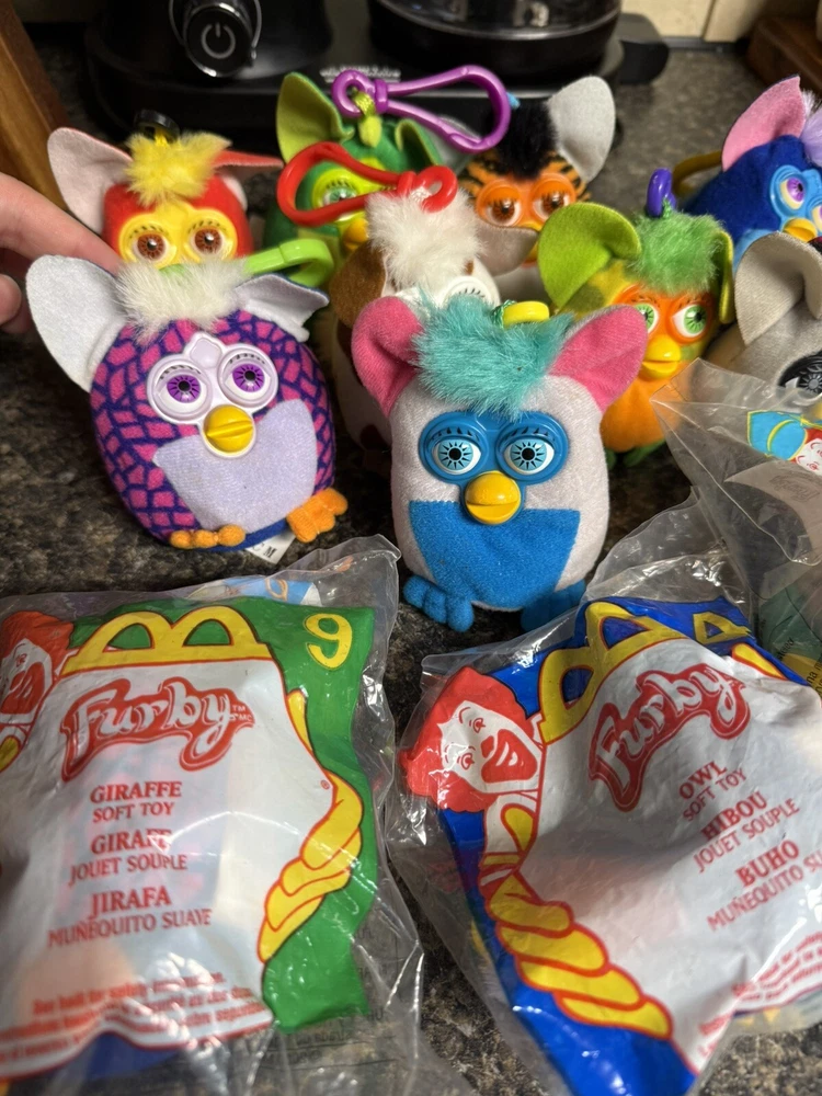 This set of 12 McDonald's Happy Meal Furby plush keychain clip toys from the year 2000 is a must-have for any collector or fan of the beloved character family.