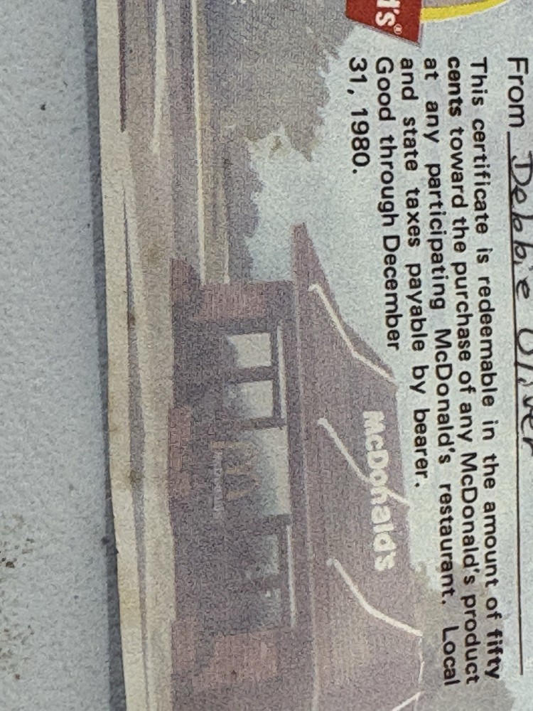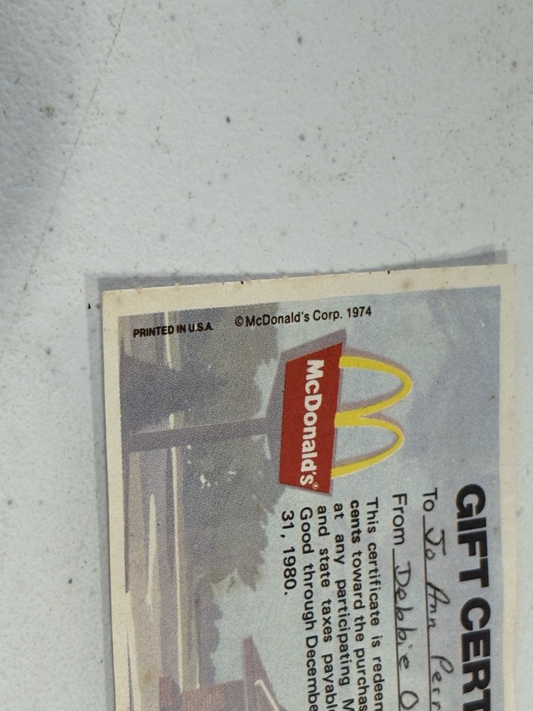 McDonald's Vintage Gift Certificates 70s 80s