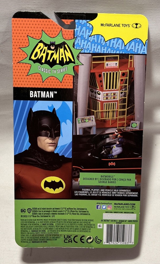 ** COMBINED SHIPPING, ADD ALL TO 1 CART, RATE BASED ON WEIGHT! ** DESCRIPTION: BATMAN (BATMAN 66′ MOVIE POSTER) Brand: DC Retro Genre: Movies & TV Product Type: Action Figure Series: IN STOCK Now The Dark Knight. The World’s Greatest Detective. Gotham City’s Guardian. The hero known as Batman goes by many titles as the result of a life in the shadows building an urban legend that is revered by the innocent as much as it is feared by Gotham City’s cowardly and superstitious criminal lot. In a world full of Super Heroes and Super-Villains, Batman fights crime using his intellect, physical and mental training, and an arsenal developed with his family’s fortune. Moreover, Bruce Wayne has an unrelenting need to prevent the kind of tragedy that he suffered from happening to any of Gotham City’s innocents. Product Features: Incredibly detailed 6” scale retro style figure based on the BATMAN™ ’66 comics Designed with articulation with up to 12 moving parts for retro play Based on the deco from the Batman Movie Poster Accessories include a Bat-shield Collect all McFarlane Toys DC Retro Figures *CONDITION!* Figure Grade: MINT Package Grade: NEAR MINT! Return policy After receiving the item, contact seller within Refund will be given as Return shipping 30 days Money back or item exchange (buyer's choice) Buyer pays return shipping Return policy details If EXCHANGE is the buyers choice, then shipping for exchanged item is BUYERS responsibility! Payment details Payment method Preferred / Accepted PayPal Preferred Visa/MasterCard, Amex, Discover Accepted Seller's payment instructions INSURANCE is provided for DOMESTIC UPS GROUND and USPS INTL PRIORITY MAIL ONLY! ALL other options are the choice of the buyer based on THEIR decision since multiple shipping options are offered! ALL INTL 1ST CLASS packages are UNINSURABLE items and we will NOT be held responsible for LOST or DAMAGED items! We DO NOT pay Intl CUSTOMS FEES, nor will we ADJUST shipping labels to avoid your countries fees! BUYER agrees to these terms by finishing the checkout process and paying for their Msde!