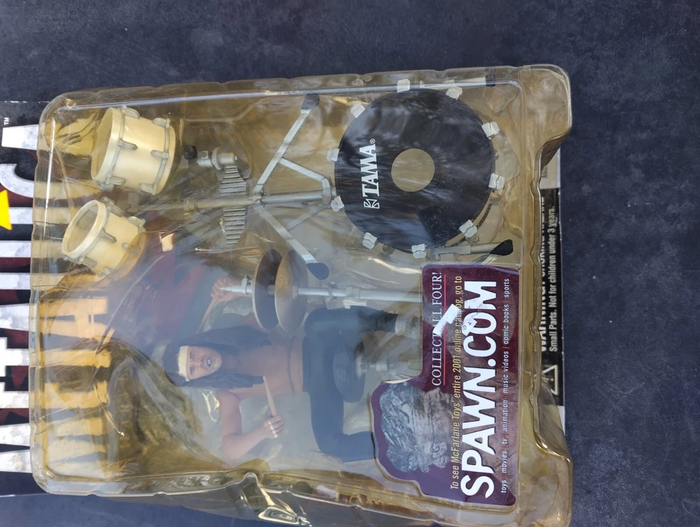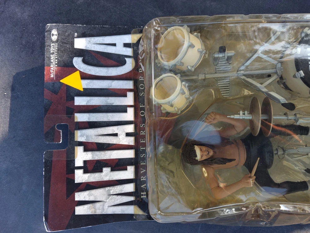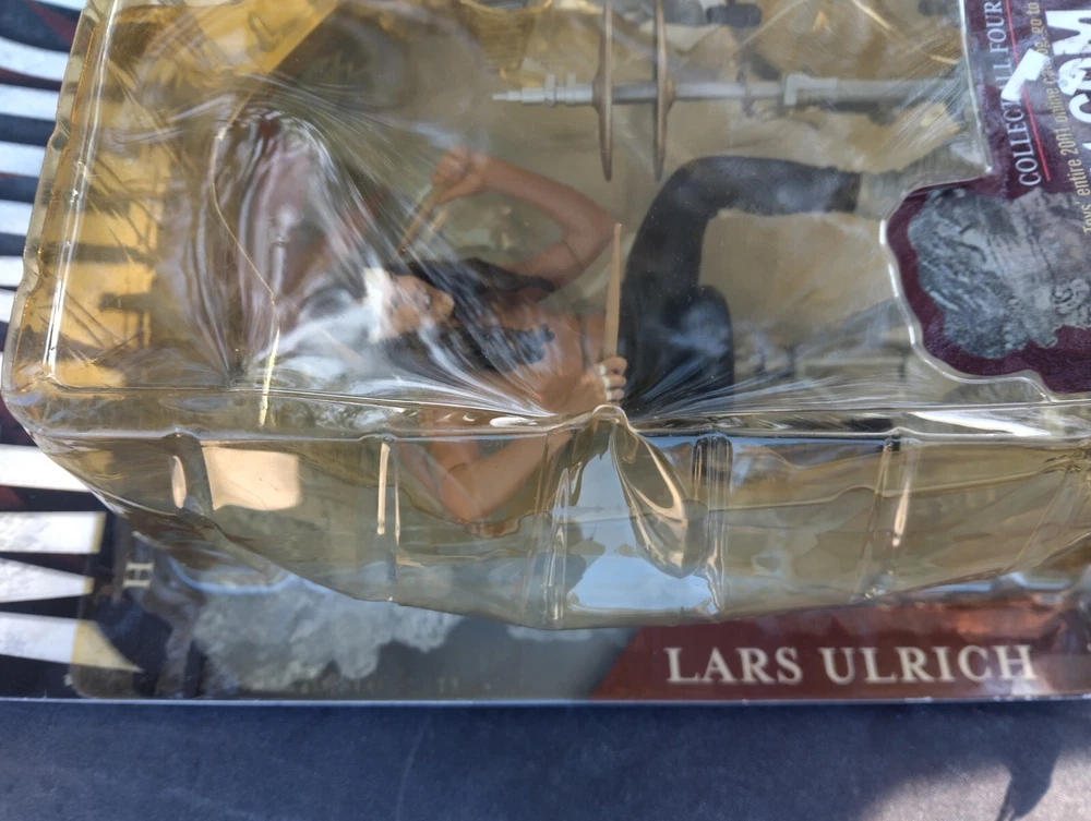 This McFarlane Toys Spawn.Com Metallica action figure features Lars Ulrich, the iconic Metallica drummer. The figure is made of plastic, metal, and acrylic materials, and is designed at a 1:12 scale. It comes boxed and is an original, licensed reproduction from the year 2001. The figure is perfect for fans of Metallica and collectors of action figures. It is graded 95+ and is suitable for ages 13+. The figure depicts Lars Ulrich in his concert outfit and is a great addition to any collection.