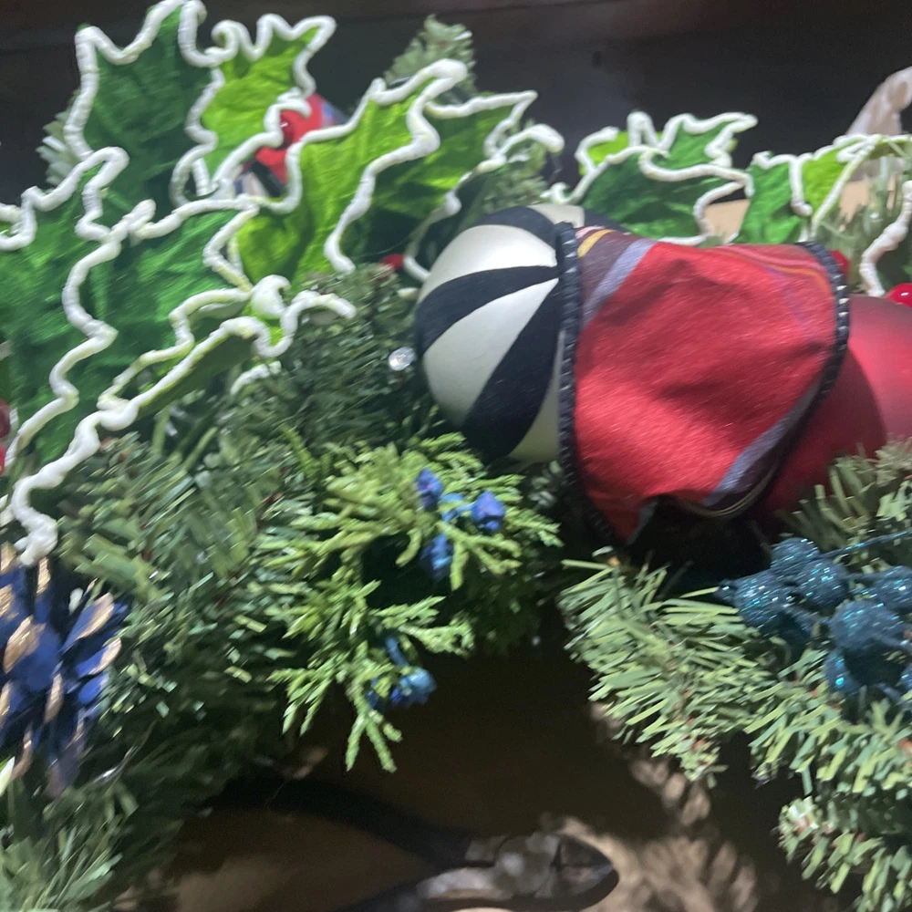 Vintage Handmade Fabric Wreath for Christmas and Holiday Decor