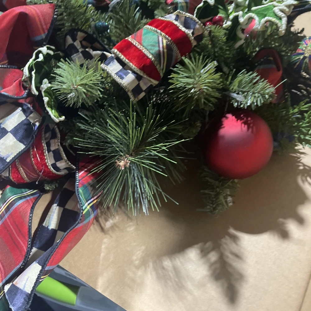 mckenzie childs Wreath Santa. Condition is New. Shipped with USPS Ground Advantage.