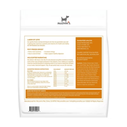 Important Note for Our Valued Customers: To offer you the best prices with free shipping, we occasionally experience shipping delays. If this happens, we’ll notify you immediately, issue a full refund, and invite you to place a new order at your convenience. To keep costs low, we sometimes reuse branded packaging boxes for shipments—we appreciate your understanding if you receive your order in repurposed packaging. Rest assured, all products we sell are 100% brand new, unopened, and freshly manufactured, including pet food and human-grade items, with a minimum 8-month shelf life remaining. If any issues arise, please contact us first—we’re committed to resolving them quickly. If you’re not completely satisfied, we offer a full refund with no hassle. Thank you for your trust and support! Highlights Complete and balanced meal for dogs Made with real chicken as the main ingredient Contains wholesome vegetables for added nutrition No artificial flavors or preservatives Provides essential nutrients for your dog's well-being Description Give your dog a meal that's both delicious and nutritious with McLovins Chicken Recipe Full Meal Dog. This complete and balanced meal is made with real chicken as the main ingredient, ensuring your dog gets the protein they need to thrive. Every bite is packed with wholesome vegetables, providing a balanced blend of essential nutrients. With McLovins Chicken Recipe Full Meal Dog, you can trust that your furry friend is getting a meal made with care. There are no artificial flavors or preservatives, only high-quality ingredients that support your dog's overall well-being. Each serving is carefully formulated to provide a satisfying and nutritious meal. Watch as your dog eagerly devours this flavorful recipe. The enticing aroma and taste of real chicken will have them wagging their tail in delight. McLovins Chicken Recipe Full Meal Dog is not only a treat for their taste buds but also a source of vital nutrients that contribute to their overall health and vitality. Make mealtime a moment of joy and nourishment for your dog. McLovins Chicken Recipe Full Meal Dog is the perfect choice for pet owners who prioritize quality and nutrition. Give your dog the meal they deserve and experience the satisfaction of seeing them thrive.