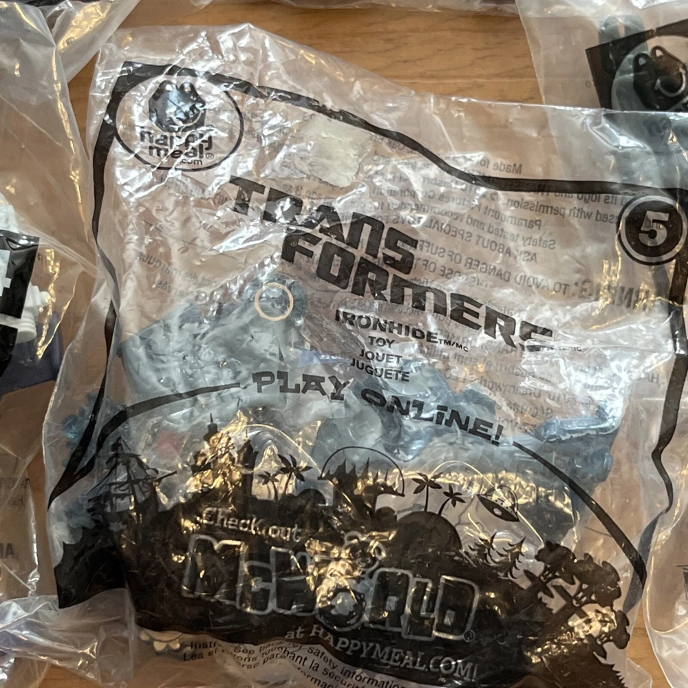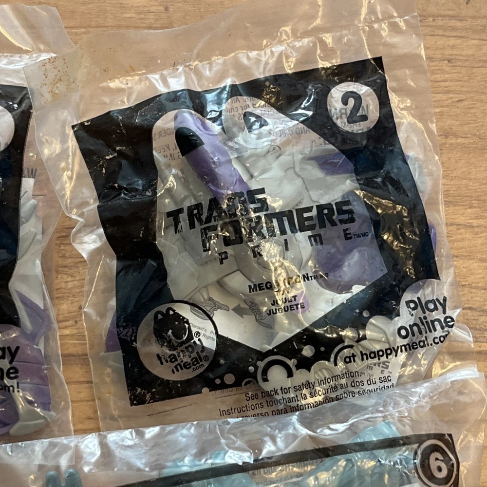 Mcdonalds Toys TRANSFORMERS Optimus Prime Megatron Cyclonus Ironhide Blackout One duplicate. Please see pictures for minimal wear to packaging from storing, one has sticker residue. Check out our store, Shiloh Trading Post, for more of the things you like! We combine shipping. Thank you for shopping at Shiloh :)