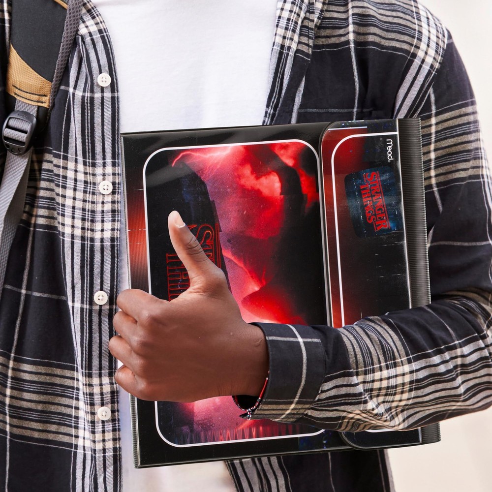 Mead Trapper Keeper Binder, Stranger Things, 1 Inch Binder 1 inch, Creatures Description Get ready for the ultimate adventure. The Trapper Keeper STRANGER THINGS Creatures Binder helps you stay organized even when face-to-face with otherworldly monsters. No need to fear the Upside Down. The hook and loop closure helps trap all your stuff inside – even if you drop it! Two folders help keep your papers secure. Each folder has a vertical pocket that holds loose sheets so they won't fall out. Common stats are printed right on the folders, so you don't forget the basics. Store the folders and other 3-hole punched sheets in the sturdy 1" metal binder rings. A metal clip on the back of the Trapper Keeper secures loose papers and notes while on the go. Store even more in the inside pocket, perfect for keeping handouts, character sheets and extra paper close at hand. STRANGER THINGS is a trademark/copyright owned by Netflix. Used with permission. Upside Down Pictures. Monkey Massacre Productions. 21 Laps. Shawn Levy. Features: It's a creature double-feature. Stay organized even when face-to-face with otherworldly monsters. No need to fear the Upside Down. The hook and loop closure helps trap all your stuff inside – even if you drop it! Two folders help keep your papers secure. Each folder has a vertical pocket that holds loose sheets so they won't fall out. Common stats are printed right on the folders, so you don't forget the basics. Store the folders and other 3-hole punched sheets in the sturdy 1" metal binder rings. A metal clip on the back of the Trapper Keeper secures loose papers and notes while on the go. Store even more in the inside pocket, perfect for keeping handouts, character sheets and extra paper close at hand Product Details: Handling We will ship all orders within 3 business day of payment. Delivery We Do Not Ship Outside of the Continental US. Return Policy All items qualify for returns within 30 days of receipt. Buyer is responsible for return shipping on any item that is not damaged. Feedback We take our reputation seriously, we buy and sell online, so we understand the value of trust. If you are unsatisfied with your order, please contact us and we will work with you to resolve it to your satisfaction.