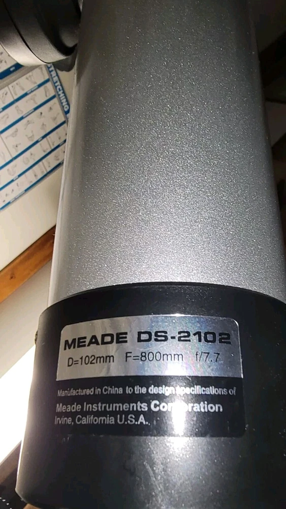 The Meade Autostar DS-2102 is a digital telescope with a motorized base and a built-on StarPointer finderscope. It comes with a tripod for stable viewing and tracking of celestial objects. The telescope features fully coated lenses for clear and bright images, making it a great option for stargazing enthusiasts. Please note that this particular listing is for parts only. Selling as is in pictures. When tested only problem present seemed to be no automatic base rotation. Only motorized hinging at arm worked.