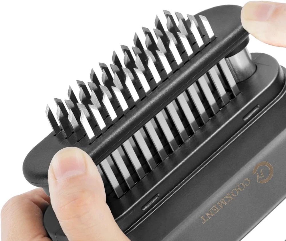 【TO BE A PROFESSIONAL CHEF】- JY COOKMENT meat tenderizer tool can creates tiny channels within the meat and break down the connective tissues which make meat tough and chewy. 【EASY TO USE AND CONTROL】- Our meat tenderizer is ergonomic design with a comfortable, non-slip handle. Simply press down on the top and the sharp blades cut through the toughest fibers of your particular cut of meat. 【REDUCE MARINADE & COOKING TIME】- These tiny channels within the meat allow marinades to be fully absorbed into the meat in just about 5 minutes. They also allow heat to penetrate more quickly to reduce cooking time by up to 40%. Less cooking time means less loss of natural flavors and juices. 【ERGONOMIC DESIGN AND EASY TO CLEAN】- After using this meat tenderizer, just soak in warm soapy water after a few minutes and wash it with our cleaning brush. Dishwasher Safe 【ELEGANT PACKAGE IS GOOD CHOICE FOR GIFT】- JY COOKMENT meat tenderizer with elegant package, it is really nice to be a gift to your family or friends. 7*24 hours friendly customer service and If you're not happy, simply return meat tenderizer. No questions asked! JY COOKMENT2024 ECONOMIC MEAT TENDERIZER Economic Meat tenderizer JY COOKMENT JY COOKMENT kitchen Utensils will do you a favor to be a professional chef in your kitchen. Specialized in high-quality Kitchen Utensils & Gadgets.Your satisfied is our Goal! 2024 JY COOKMENT ECONOMIC MEAT TENDERIZER Tenderizer All of Enjoyment into Your Every Juicy Bite! JY COOKMENT meat tenderizer tool consists of 48 ultra-sharp blade that can easily break down the connective tissues of raw meat. And it allow marinade or seasoning penetrate in rapidly and intensely. which can solve all your troubles. If you use our Meat Tenderizer, the beef or sirloin cooked by yourself just like you have eaten in the best High-end restaurant. ECONOMIC SS304 material blades Dishwahsher Safe Ergonomic Handle Best / perfect gift for your friends and family WHY CHOOSET JY COOKMENT MEAT TENDERIZER? 48PCS ss304 sharp blades REDUCE 40% COOKING TIME While meat instantly seals on the outside, locking in juices, the connective tissue break down remains open, like little channels, allowing more hot air to flow through, without releasing juices – for meat that’s as quick as it is juicy and delicious. Comfort handle JY COOKMENT meat tenderizer ergonomic design with a comfortable, non-slip handle. Simply press down on the top and the sharp blades cut through the toughest fibers of your particular cut of meat. Juicy, Tender & Yummy for Every Bite! JY COOKMENT NEW DESIGN ECONOMIC meat tenderizer can creates tiny channels within the meat and break down the connective tissues easily Perfect Gift Choice!