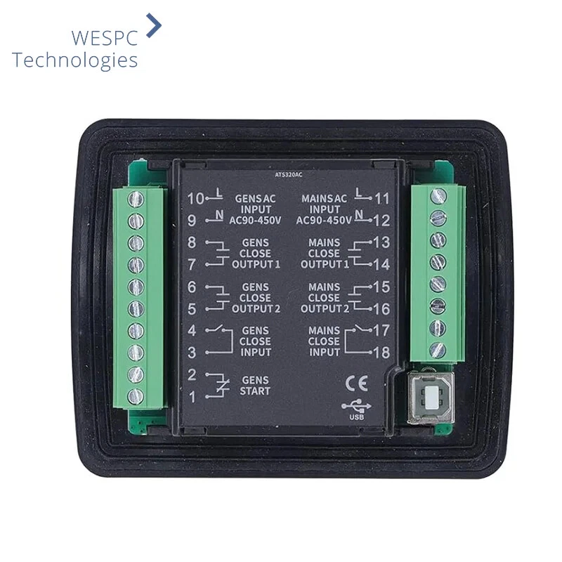 Original Mebay ATS320AC Generator ATS Controller Panel Automatic Transfer Switch Control Module With USB Port Generator Parts The controller is a mains/gens ATS controller, which can automatically or manually control the ATS dual power switch, suitable for the application of one mains and one power generation. The LCD screen can display various faults at the same time. Once the generator does not run normally, it can effectively achieve protection. It can display single-phase power generation voltage, power generation frequency, mains voltage, and mains frequency; the working mode (manual, automatic, test, shutdown) indicates the working status of the ATS switch through the LED indicator; There are Chinese/English interface options, more language can be set according to user's request. All the parameters can be configured through the front face buttons or use programmable interface by USB to adjust via PC. It has compact structure, advanced circuits, simple wiring and high reliability, It can be widely used in various types of power systems.