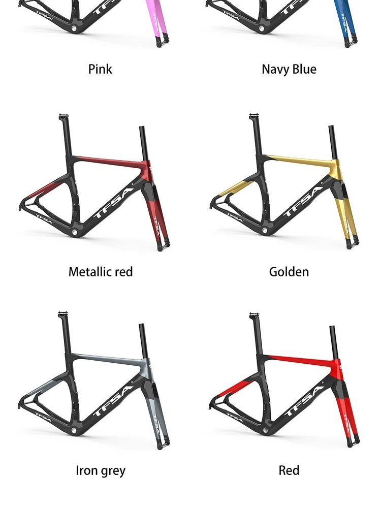 Suitable Bottom Rack:BSA (BB68) Suitable Derailleur:for Mechanical groupset and Di2 groupset Wheels:700C Wheels Avaliable Size: 44, 49, 52, 54, 56, 58 Including:frame+fork + seatpost + clamp + headset Warranty: Frame- 2 Years, Fork&Seatpost- 1 Year, Handlebar&Stem- 1 Year Company Profile Dongguan Bangzhi Sports Goods Co., Ltd. was founded in 2010, currently located in Jinping Industrial Zone, Shishou City, Jingzhou city, focusing on carbon fiber bicycles, bike accessories and other related sports goods. We have a professional R & D and production team, providing one-stop service from R & D, weaving, pre-molding, molding, filling, painting, vehicle assembling to logistics, and providing customers with quality product solutions. In order to serve customers better, in 2019, we set up two branches of Huizhou Zhihe Sports Equipment Co., LTD and Huizhou Huazhong Sports Goods Co., LTD. At present, our plant has an expanded area of about 10000m2, where there are more than 600 employees and an annual output of 40K, effectively making up for the lack of quality control and production capacity. We attach importance to the protection of intellectual property, and have registered brand TFSA in 2015 in many countries. Our products have appearance patents or practical patents, which can better protect the online customers. At the same time, we also follow the rules of environmental protection, and make continuous efforts to keep innovation, to improve product competitiveness and to create a better quality of life for the society. Looking forward to traveling with you in the future! Why to choose us? A. Strict quality assurance! To ensure our customers get the excellent quality product, from material control to finished products assembly, every process will be strictly administrated and supervised by our own team. And we provide 2 years warranty. B. Competitive Factory Price! No Agency Fees! Hubei Bangzhi Technology Co., Ltd . with branches of Huizhou Zhihe Sports Equipment Co., LTD and Huizhou Huazhong Sports Goods Co., LTD, are the manufacture factories of carbon fiber bicycles. We sell the products from our factory directly. No agency fees. C. Fast delivery ! We deliver directly from our own factory instead of the agencies buy the items firstly from factory and send out. D. Brand products ! Our factory has been devoted to build our own brand "TFSA" . Excellent quality with competitive price will help us to win more of the market shares. Surely our buyers will be the beneficiaries. E. Welcome you to be our agent! We have registered our brand "TFSA" in China, Hongkong, Taiwan, Southeast countries, America, European countries, Australia and etc. Please trust in our strengths. TFSA will become the global famous brand in the near future! Warmly welcome you to be our agent in your country!