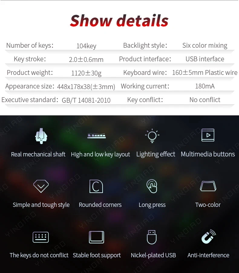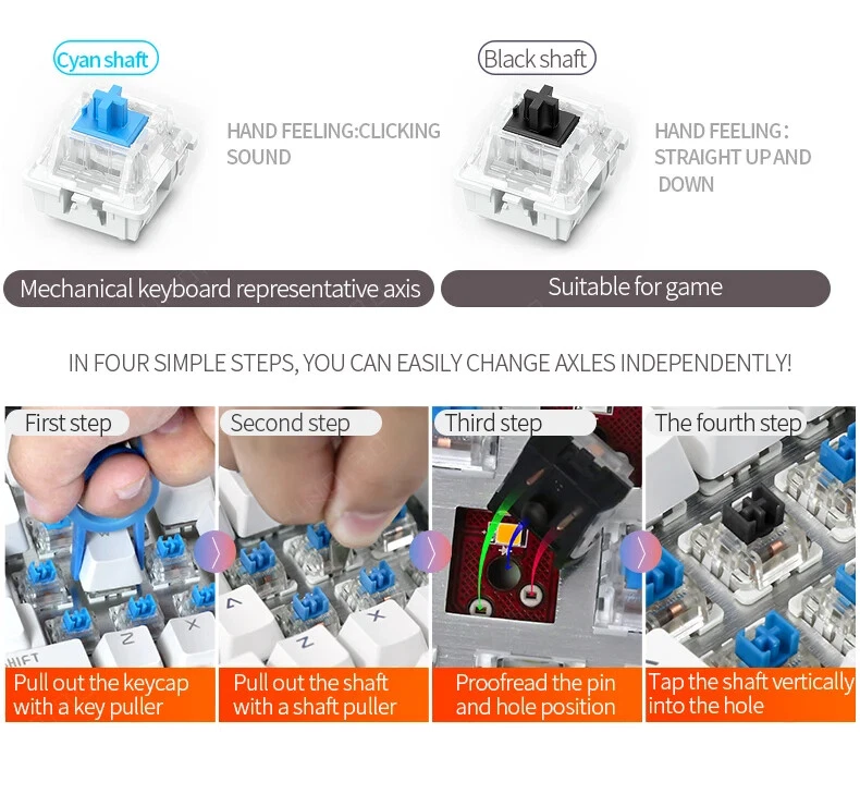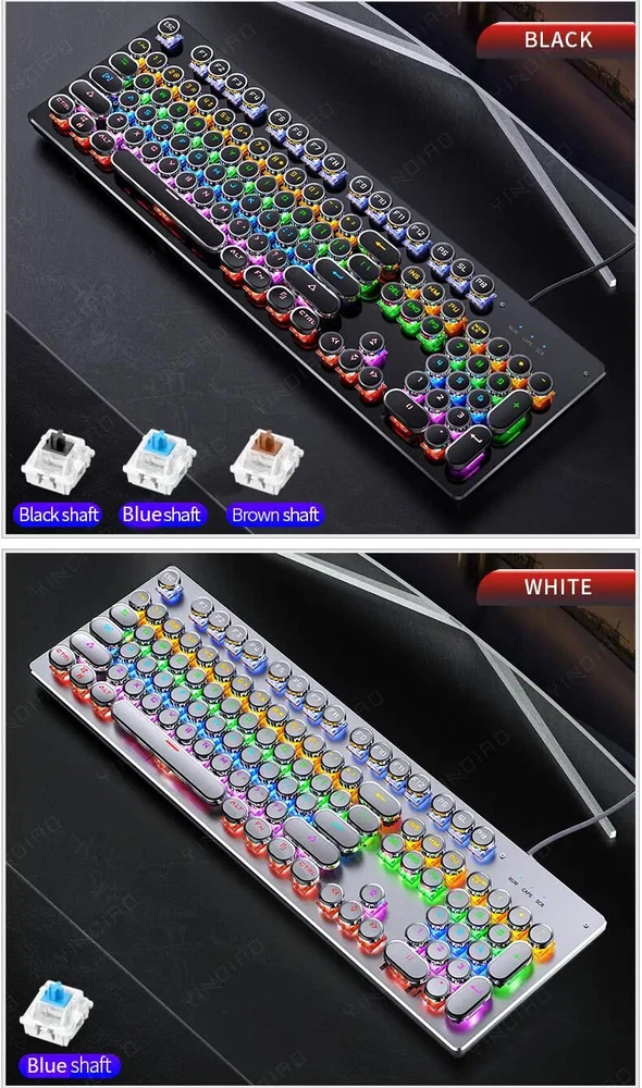 Mechanical Keyboard Blue Black Brown Switch 104 Keys USB Wired Gaming Keyboards