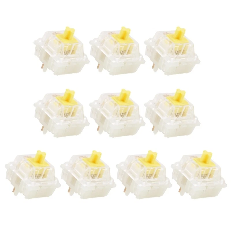 Features: brand new and high quality Linear Nylon Bottom Housing, POM Stem. 45g , 62g , 65g Bottom Out force. Well Pre-lubed. structure operating life: over 50 milliontimes. Specifications: Type: Linear Color: White , Red , Yellow(optional) Travel: 4mm Travel 2mm operating Material: Full Nylon Shell, POM Shaft Life: more than 50 milliontimes Features: Five-legged linear Quantity: 10pcs Bottem force: 45g , 62g , 65g Package Includes: 10pcs x Switches note: Please allow 0-1 inch error due to manual measurement. Thanks for your understanding. Monitors are not calibrated same, item color displayed in photos may look slightly different from the actual item.