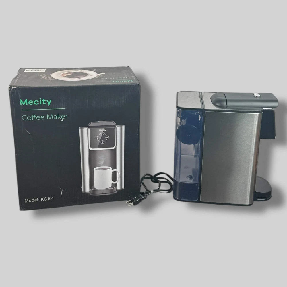 Mecity | 3-in-1 Single Serve Coffee Maker | Tested Unit/Open Box | Excellent Condition Mecity 3-in-1 Single Serve Coffee Machine is a versatile coffee maker compatible with K-Cup capsules, ground coffee, and instant coffee. With 6, 8, and 10oz brewing options, it allows you to customize your cup size with ease. The removable 50oz water reservoir ensures multiple servings before needing a refill.This 1150W coffee maker heats up quickly, making it perfect for busy mornings. The sleek black design complements any kitchen, while the user-friendly interface ensures a hassle-free coffee experience.Condition: Like New in Box. This coffee maker is in excellent condition with minimal signs of prior use and includes its original packaging.Product Details:Material: Plastic, stainless steel componentsCapacity: 50oz water reservoirPower: 1150WFeatures: Compatible with K-Cups, instant coffee, and ground coffeeColor: Black Mecity | 3-in-1 Single Serve Coffee Maker | Tested Unit/Open Box | Excellent Condition Mecity 3-in-1 Single Serve Coffee Machine is a versatile coffee maker compatible with K-Cup capsules, ground coffee, and instant coffee. With 6, 8, and 10oz brewing options, it allows you to customize your cup size with ease. The removable 50oz water reservoir ensures multiple servings before needing a refill. This 1150W coffee maker heats up quickly, making it perfect for busy mornings. The sleek black design complements any kitchen, while the user-friendly interface ensures a hassle-free coffee experience. Condition: Like New in Box. This coffee maker is in excellent condition with minimal signs of prior use and includes its original packaging. Product Details: Material: Plastic, stainless steel components Capacity: 50oz water reservoir Power: 1150W Features: Compatible with K-Cups, instant coffee, and ground coffee Color: Black × × × × × Buy now and save! Shipping info Click the Shipping & Payments tab above the listing description for more info Click the Shipping & Payments tab above the listing description for more info! Additional delivery notes PICK UP OPTION Sorry, our items are NOT available for pick-up. PAYMENT Immediate payment is required upon selecting "Buy It Now" or upon checking out through the cart. We accept payment via U.S. PayPal accounts and all Major Credit Cards, Debit Cards & Google Pay. We are legally required to collect sales tax in those states and localities where we maintain a physical presence (nexus). The applicable amount of sales tax charged to an order will be calculated based on the shipment destination's state and local sales tax laws. Thank you for shopping with us on eBay! Additional Information No additional information at this time Ask seller a question You might also like Egg Wooden Serving Board - Threshold Hello Gorgeous Mug | 15 Ounce Pier 1 Reflections Crackle Goblet | 2 Pack Farberware 3-Piece Wood Cutting Board Set | Bamboo Meal Prep & Serving Contact To contact our Customer Service Team, simply click the button here and our Customer Service team will be happy to assist. Ask seller a question © Kitchen Switchen Shipping & Payments Click the Shipping & Payments tab above the listing description for more info Payment Accepted Payment Methods Immediate payment is required upon selecting "Buy It Now" or upon checking out through the cart. We accept payment via U.S. PayPal accounts and all Major Credit Cards, Debit Cards & Google Pay. We are legally required to collect sales tax in those states and localities where we maintain a physical presence (nexus). The applicable amount of sales tax charged to an order will be calculated based on the shipment destination's state and local sales tax laws. Thank you for shopping with us on eBay! Returns Returns are accepted Items must be returned within 30 days of the auction ending Buyer will pay for return shipping. eBay integration by