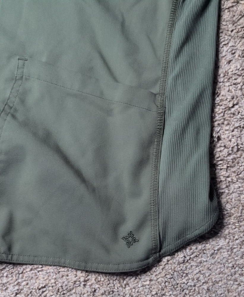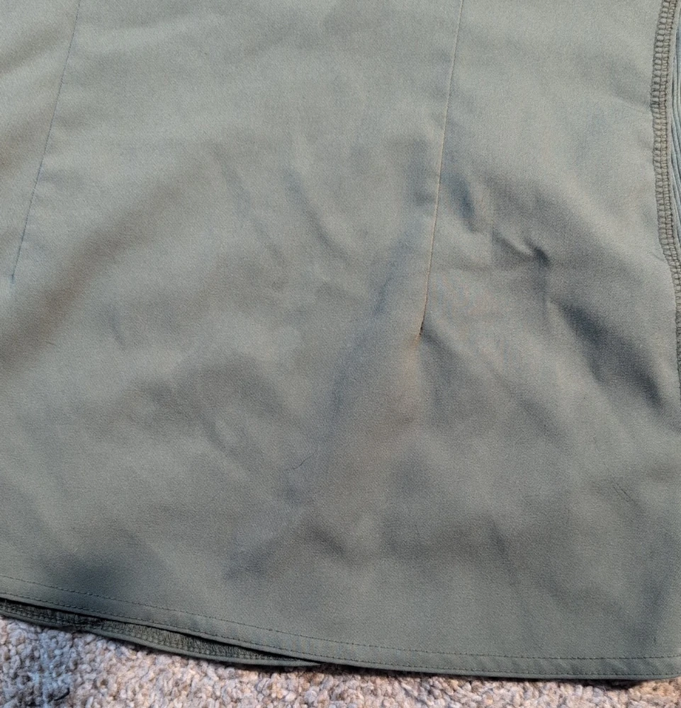 The Med Couture Touch Women's Scrub Top in size M offers a comfortable and stylish option for women in the medical industry. Made of polyester material, this solid green top features a V-neck design with added stretch for a flexible fit. Perfect for nursing and other medical professions, this scrub top by Med Couture provides a functional and professional look for female healthcare workers. Item is in good shape. It has a couple of stains that are faint. please see photos.