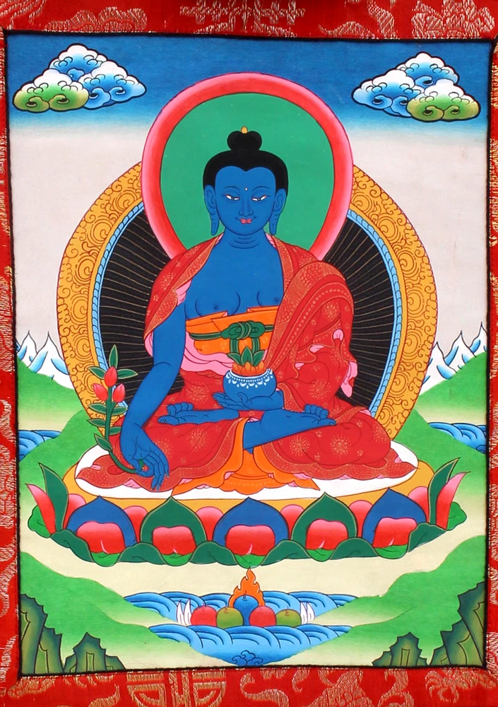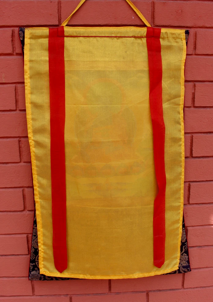 This is a beautiful Medicine Buddha Embroidered Wall Hanging Banner with Brocade. This stunning piece showcases the elegant form of White Tara, the Buddha of healing and medicine in Tibetan Buddhism. Crafted with meticulous attention to detail, the intricate design is complemented by a lavish brocade border, adding an opulent touch to any space. Whether gracing your meditation corner or adorning a prominent wall, this wall-hanging emanates a sense of tranquility and grace. Elevate your surroundings with the presence of Medicine Buddha and the timeless elegance of this finely-crafted wall-hanging with brocade. The banner can be hung at altar room, your living area or anywhere you want to. This banner makes a beautiful addition to your home decor. Size: 29.5" H x 18"B (White Tara only: 10.8" x 14") Weight: 225 grams