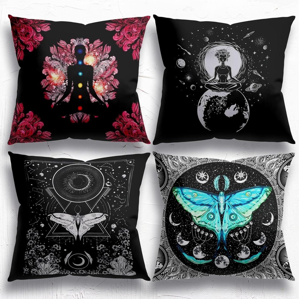 Meditation Pillow Covers Set - Meditation Room Decor, Yoga Room Decor, Gothic Pillow Covers 18x18 Set of 4, Witchy Decor Aesthetic, Meditation Gifts, Tarot Gifts, Gothic Decor 100%flannel Size:18x18 inch. Material:100% flannel. Great Addition For Home Decor:Help you to change home style or add the festival happy atmosphere immediately. Unique Gift Ideas: You can give them as gifts to your friends, family, colleagues, classmates... Washing Tips: Machine wash in cold water gently. Don't bleach. Help you to change home style or add the festival happy atmosphere immediately. You can give them as gifts to your friends, family, colleagues, classmates...