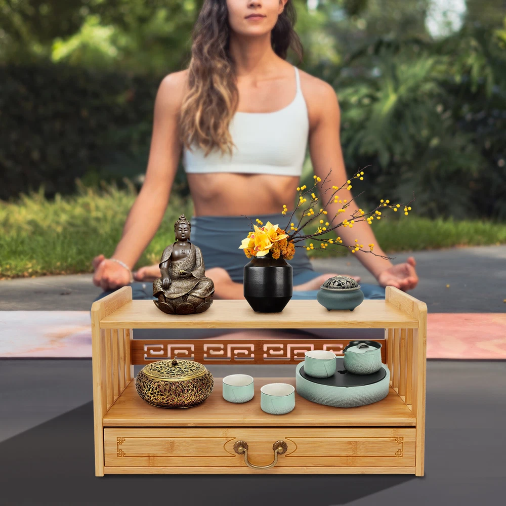 Meditation Storage Table Altar Table with Drawer Wood Desktop Organizer USA