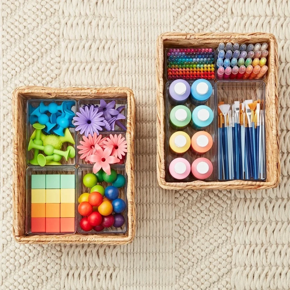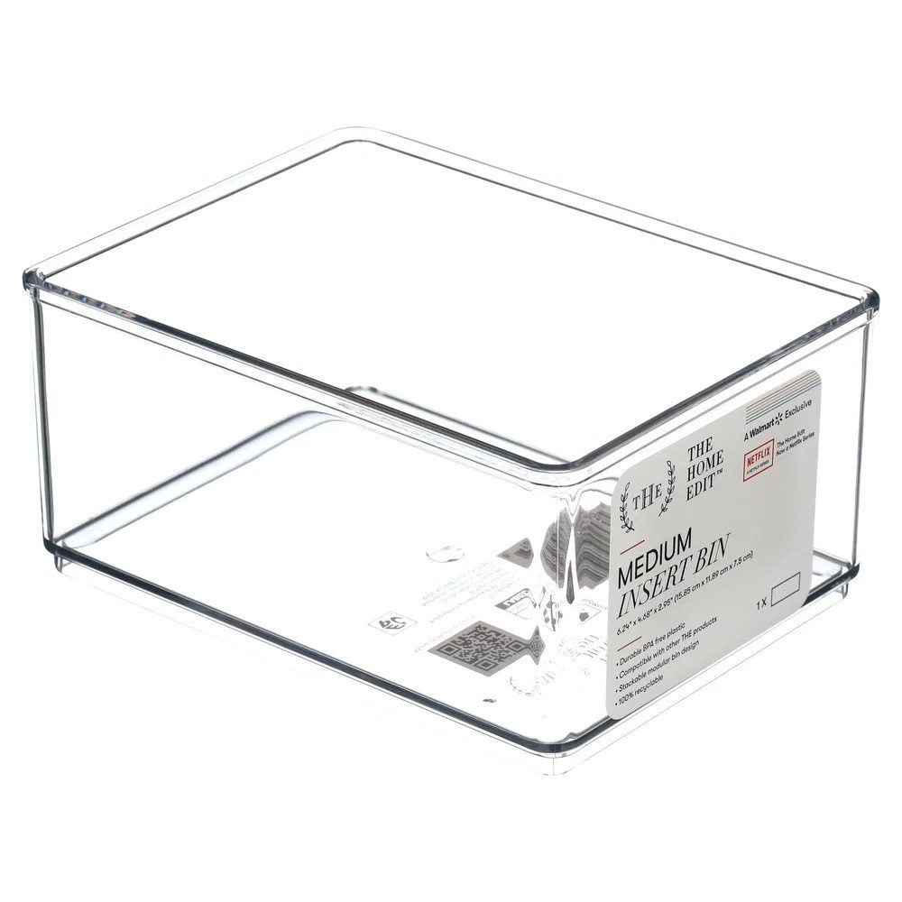 Product details This two-pack of Medium Clear Storage Bin Organizer Inserts (6.24" x 4.68" x 2.95") is here to help kick off your new organizational adventure. Plastic Modular Storage and Organizational System is perfect for decluttering and organizing the pantry, home office, bathroom, and more. Here at we believe that any space can function efficiently while looking beautiful with smart systems on your side. From tackling a toy room to freshening up your fridge, our products will help you get organized, and most importantly, keep it that way. Medium Clear Storage Bin Organizer Insert, 2 Piece, 6.24" x 2.95" x 4.68" As seen on Netflix Durable, BPA-free plastic Stackable modular bin design Inserts measure 6.24" x 4.68" x 2.95" Mix and match with other storage solutions Decorative items not included Specifications Recommended Use Toy Storage Recommended Room Closet, Kitchen, Bathroom, Kids Room Material Plastic Color Clear Finish Clear Number of Compartments 1 Count 2 Shape Rectangle Has Lid Y Features Stackable Cleaning, Care & Maintenance Hand Wash Only Theme Everyday Pattern Clear Age Group Adult, Teen, Child Assembled Product Weight 1 lb Size M Assembled Product Dimensions (L x W x H) 6.24 x 4.68 x 2.95 in