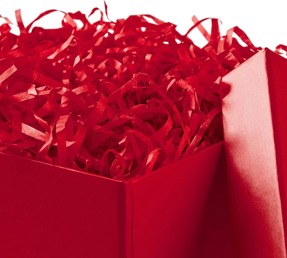 Medium Gift Box with Lid and Shredded Paper Fill (Red 7 Inch Box) for Birthdays,