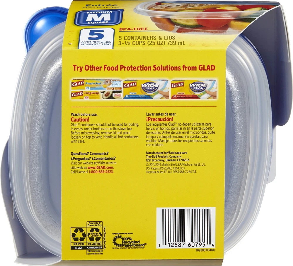 Medium Square Food Storage Containers for Everyday Use | Medium Square Food Storage Containers Hold up to 25 Ounces of Food (25 Oz) |5 Count, Standard Food Containers, Blue, Clear AIRTIGHT FOOD STORAGE CONTAINERS - GladWare is your kitchen ally. Airtight food storage containers extend the lifetime of your leftovers and reduce mess. Perfect for the meal prep maven, lunch box packing expert, or freezer-filling guru THE RIGHT SIZE FOR EVERYTHING - GladWare comes in many shapes and sizes to suit your needs. The Medium Square food container can hold 25 ounces of food, making it perfect for hearty grain bowls, or grilled salmon salad TOP-RACK DISHWASHER SAFE - Gladware food containers resist heat and withstand moisture, making them safe to use on the top-rack of your dishwasher. is here to minimize mess and make clean up a breeze INTERLOCKING LIDS - Interlocking lids alleviate the frustration of a endlessly searching for the right size lid. Stackable containers and lids keep your cupboards neat and organized, saving you time and space MICROWAVE SAFE - containers won't melt or warp in the microwave, making it easier than ever to keep your kitchen mess-free. Store, heat, and eat right out of Gladware. Simply lift one corner of the lid before microwaving Product Description Food Storage Containers, Entree size, keep your food fresh and secure whether stored in the refrigerator, freezer, or on the go. Lids easily snap on creating a tight seal and preventing messy spills. The five 25 ounce containers are the perfect size for bringing an entree for a potluck party, packing dinner for friends, or for stocking premade dinners in the freezer. BPA free and microwave safe, you can safely heat food in these containers. Clean up is quick and easy because they are dishwasher safe. Containers and interlocking lids stack neatly to save space in your cabinets. When you use , you know your food is receiving quality protection. FROM THE MANUFACTURER Conquer cabinet clutter with GladWare Containers with Interlocking Lids. These extra-sturdy containers seal in freshness and prevent messy leaks, and as always, they're microwave, freezer and dishwasher safe. The Entree size comes in a pack of five 3 1/8-cup square containers with lids. Food storage containers from are high quality plastic containers. also makes food storage like tupperware sets with lids. Food containers from are like rubbermaid but better tupperware sets with lids. provides many sizes of food storage containers like 24 oz plastic containers with lids or 3 cup tupperware containers or 8 cup plastic food containers. A container meal prep for food storage could be like disposable tupperware set. 25 oz 25 oz containers with lids. Also look into deep dish. From the Manufacturer Conquer cabinet clutter with GladWare Containers with Interlocking Lids. These extra-sturdy containers seal in freshness and prevent messy leaks, and as always, they're microwave, freezer and dishwasher safe. The Entrée size comes in a pack of five 3 1/8-cup square containers with lids. Shipping We offer FREE shipping on all orders! We ship within Three business days of payment, usually sooner. We use a selection of shipping services such as UPS, FedEx, USPS etc. We only ship to the lower 48 states, no APO/FPO addresses or PO Boxes allowed. Local pickups and combined shipping options are not provided at this time. Return You can return a product for up to 30 days from the date you purchased it. Any product you return must be in the same condition you received it and in the original packaging. Please keep the receipt. Payment We accept payment by any of the following methods: PayPal Please pay as soon as possible after winning an auction, as that will allow us to post your item to you sooner! Feedback Customer satisfaction is very important to us. If you have any problem with your order, please contact us and we will do our best to make you satisfied. Contact Us If you have any queries, please contact us via ebay. We usually respond within 24 hours on weekdays. Please visit our eBay store to check out other items for sale! Thank you for shopping at our store.