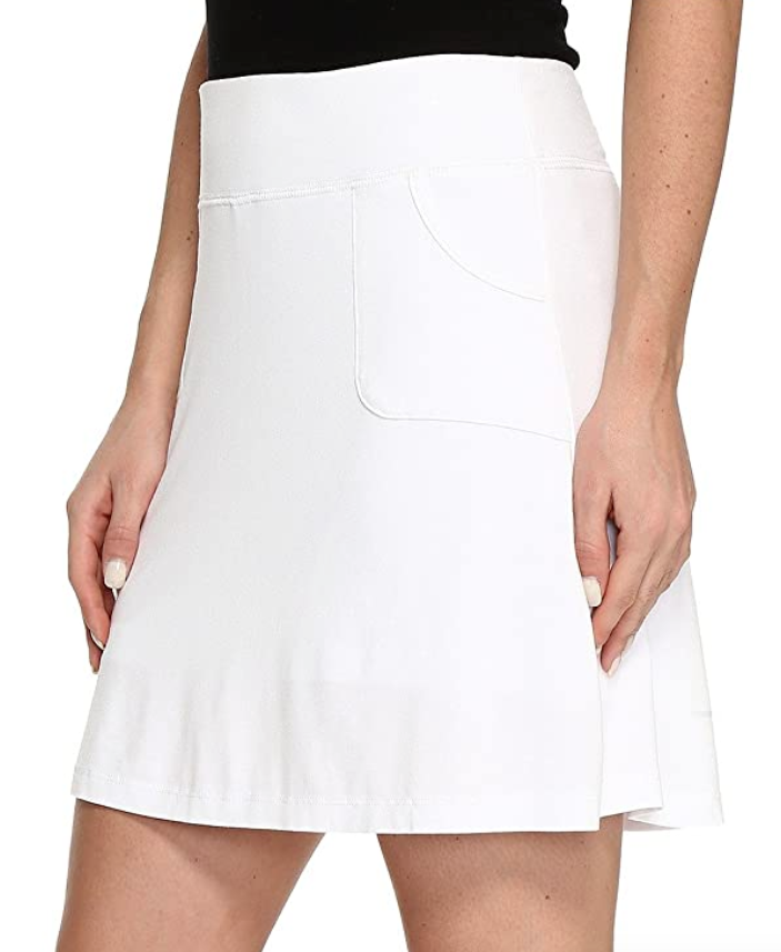 FRESH PRODUCE NEW WITH TAGS The white stretchy knit City Skort. Stretch shorts beneath and skirt continues around the back. 92% Rayon 8% Lycra Self binding front pockets Made in the USA Misses size: Medium Waist: 32" -38" Hips: 40" Measurements are approximate.