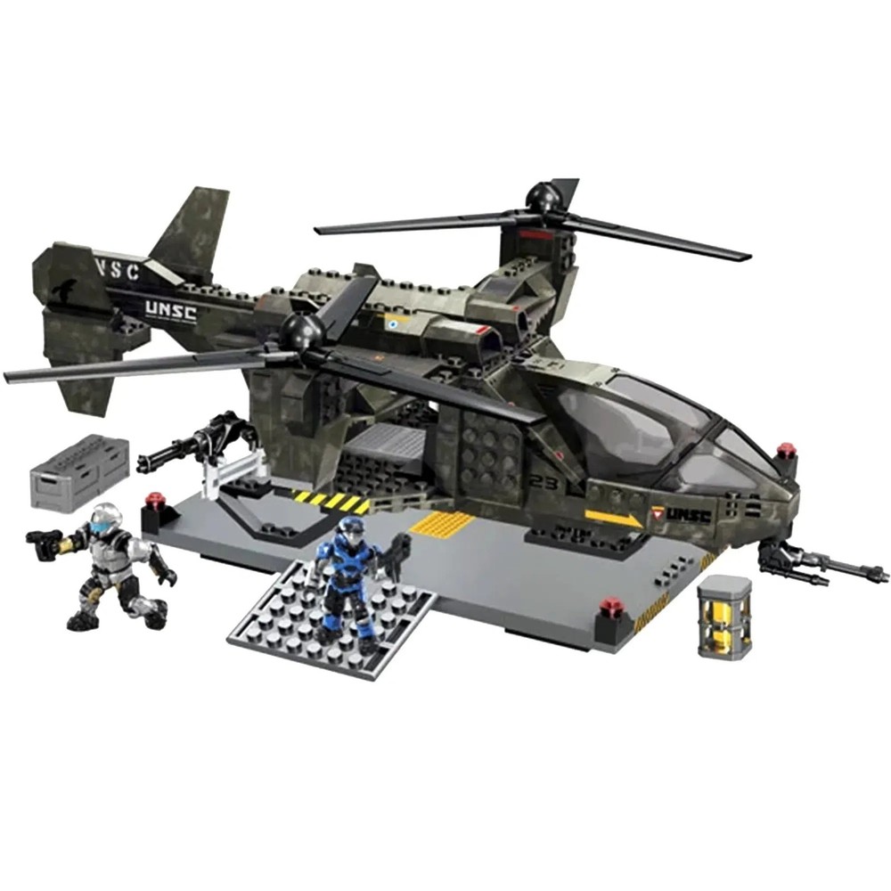 Mega Bloks [Halo] - UNSC Falcon with Landing Pad (96940) Condition: New The Mega Bloks [Halo] - UNSC Falcon with Landing Pad (96940) offers an immersive building experience for Halo fans and young builders alike. This action-packed set features the iconic UNSC Falcon, known as “The Warthog of the Skies,” complete with intricate details like rotating propellers and an opening cockpit. Perfect for recreating epic aerial missions, it provides endless opportunities for imaginative play and display. Included in this set are two detailed minifigures: a Silver UNSC Pilot to control the Falcon and a Mark V Air Assault Spartan, armed with a side-mounted M247H Heavy Machine Gun. Together, they are ready to take on Covenant forces, adding exciting battle scenarios to your Halo universe. The buildable landing pad further enhances the playability, serving as a realistic base for takeoffs and landings. Ideal for ages 8 and up, this set combines the thrill of building with the captivating world of Halo. Whether expanding your Mega Bloks collection or diving into the Halo storyline, the UNSC Falcon with Landing Pad offers hours of creative engagement and fun. Assemble your forces and soar into battle! Browse what else we have in stock - thousands of toys, games, and other fun merchandise from Poggers, the best toy store in the world!