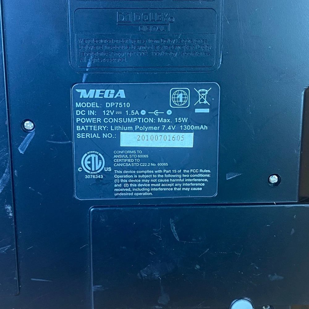 This Mega DP7510 DVD/CD player is a great addition to your entertainment setup. With its portable design, you can take it with you on the go and enjoy your favorite movies and music wherever you are. The widescreen display technology provides a great viewing experience, and the player supports various media formats such as CD, DVD, and CD-RW. The player comes in black and has a 1300mAh 12V battery that ensures you can enjoy your media for a long time. Its USB connectivity feature allows you to transfer your media files easily. It is a perfect choice for anyone looking for a versatile and reliable DVD/CD player. Mega DP7510 Black Portable 1300mAh 12V Digital Widescreen Display DVD/CD Player. Product Details Brand: Mega Model: Mega DP7510 Color: Black Type: DVD/CD Player If you do not see accessories, cables or something else in the photos, it is because it does not come with it, only what you see in the photos. ONLY comes with what's pictured. Please review pictures prior to purchase. We appreciate all business and would recommend sending a message if any issue or concern comes up. Thanks!