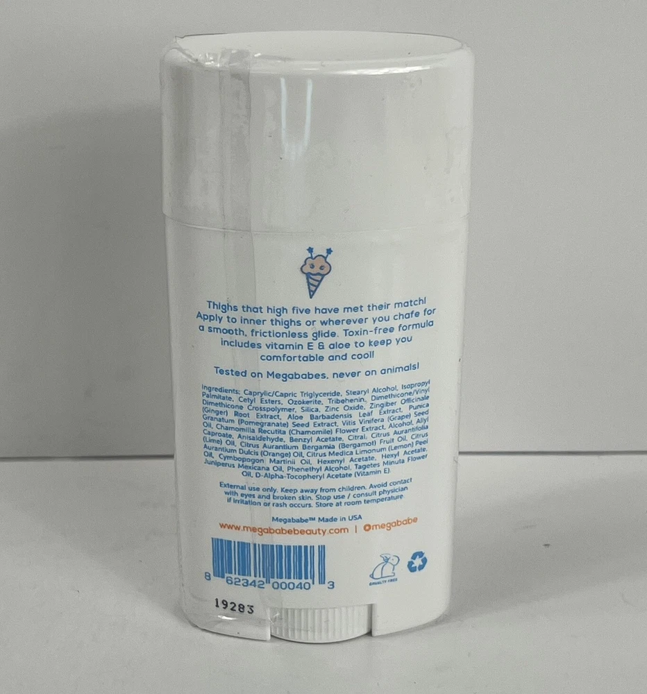 Type: Anti-Friction Stick gtin13: 862342000403 Country/Region of Manufacture: United States Scent: Pomegranate Department: Unisex Formulation: Stick Skin Type: Normal Skin Volume: 2.12 oz Ingredients: Aloe Vera, Grapeseed Oil, Pomegranate Brand: Megababe Size: Regular Features: Aluminum-Free, Animal Cruelty-Free, Paraben-Free, Sulfate-Free, Canister made of 60% Recycled Plastic, Phthalates-Free UPC: 862342000403 Product Line: Megababe Thigh Rescue