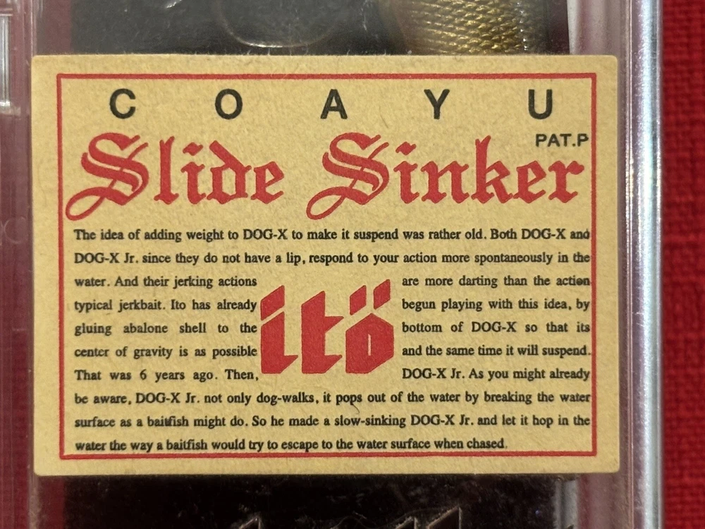 The product is a Megabass Coreyu Slide Sinker ITO crankbait lure in a rare PM OCHIAYU color, made by the Japanese brand Megabass. This high-quality fishing lure is designed for bass and all freshwater fishing, with a focus on attracting freshwater fish species. It is a sought-after item due to its rarity and unique color, making it a valuable addition to any angler's tackle box. Plus, the lure comes with free shipping, adding to its appeal for fishing enthusiasts looking to enhance their collection with a premium Japanese-made fishing gear.
