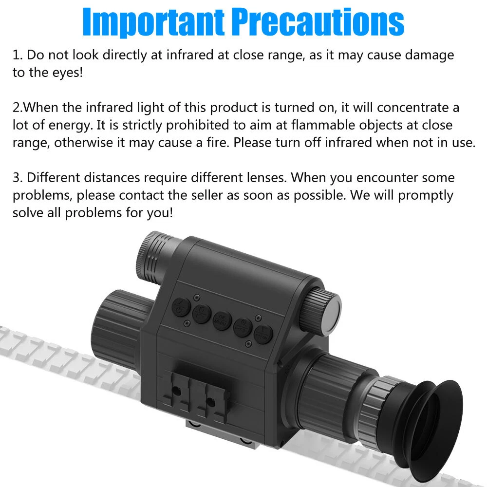 You may also like 5" HD Screen Wildlife Trap Night Vision Scope Sight Camera 850nm IR Torch Kits 95.99 USD Free shipping HD Digital Night Vision Monocular 5x40 Zoom 850nm Infrared Scope IR Camera Video 79.99 USD Free shipping 5X Zoom 5K 850nm IR Infrared Thermal Binoculars Night Vision Goggles Binoculars 54.58 USD Free shipping 5X Zoom 800M 4K Binocular Night Vision Device Telescope Digital Wildlife Hunt US 49.99 USD Free shipping Z555 Night Vision Binocular Low Light Full Color Night Device 8X Digital Zoom 89.99 USD Free shipping 10X Zoom 850nm IR Night Vision Monocular Infrared Scope HD Digital Camera Video 32.59 USD 1.99 USD Night Vision Scope for Rifle Video Record Hunting Camera Optical Sight Telescope 86.99 USD Free shipping 7X Digital Night Vision Monocular 850nm Infrared Scope Hunting Cross Cursor Set 75.99 USD Free shipping Binoculars 10x25 Compact Binoculars for Bird Watching Theater and Concerts Sport 19.99 USD Free shipping New Megaorei NK007S 720P Night Vision W/LED/Laser IR Cam Monocular 850nm 400M 86.99 USD Free shipping Product Description Megaorei 940NM Digital Night Vision Rifle Scope Optic Hunting Sight IR Camera Display: 1.2-inch circular screen, full view display Camera sensor: 200W pixels 1080P Lens optical zoom: x1/x1.5/x2/x4 Digital zoom: x1/x2/x3/x4 IR: Laser IR 850nm/940nm optional IR adjustable: x1/x2/x3 Cross: adjustable Battery: 1PC Working time: 2600mAh 1.5 hours, 5-6 hours if IR is turned off Working voltage: 3.7V Video resolution: 1920 * 1080 Output type: AVI Storage type: TF card up to 128GB Function: photo and video recording Seismic resistance: Passed 2M drop test About menus Button: Set the day and night mode effect. It is recommended to set it to "-" during the day and "+" at night Language: English/Spanish/Portuguese/Polsky/French/P усский/ Italian/German/Dutch/ عربي/ Japanese Crosshair: On/Off, you can choose to turn it on or off Cross hairs adjustment: The cross hairs can be moved up, down, left, right, and left. After the adjustment is completed, press the OK key to confirm Loop recording: Off/3 minutes/5 minutes/10 minutes Microphone: On/Off, you can choose to turn it on or off Photos and videos: viewing photos and videos Date stamp: On/Off, you can choose to turn it on or off Date/Time: Settings Time Screen brightness: You can set it from 5% to 100% Payment Shipping Terms Returns Contact Us About Taxes 1. We accept payment via PAYPAL ONLY . 2. Payment must be made within 4 days of auction closing. (Non-payment may result in a UPI (Unpaid Item) being put on your account. eBay will automatically close your account if you accumulate 4 UPI's total.) 3. TOTAL AMOUNT DUE includes the final auction price plus S&H(Shipping and Handling). 4.S&H will be determined based upon the SHIP TO address, Tax and customs. PLEASE NOTE: S&H DOES NOT INCLUDE DUTIES, LOCATL TAXES OR ANY OTHER IMPORTATION FEES. We are not responsible for any custom duty or import tax. 5. Please list your special requests (color, packages, etc.) in the PAYPAL NOTES SECTION when you make payment. Our working hours Beijing time from 9:00 a.m. to 18:00 p.m . Monday to Friday Delivery details 1. WORLDWIDE SHIPPING. (Except South America , APO/AFO,ect) 2.Orders processed within 24-48 hours of payment verification(excludes weekends and holidays). 3. We only ship to confirmed PAYPAL addresses. Your PAYPAL address MUST MATCH your Shipping address. 4. The images shown are not the actual item and are for your reference only. 5. SERVICE TRANSIT TIME is provided by the carrier and excludes weekends and holidays. Transit times may vary, particularly during the holiday season. 6. If you have not received your shipment within 40 days from payment, please contact us. We will track the shipment and get back to you as soon as possible with a reply. Our goal is customer satisfaction! 7. Due to stock status and time differences, we will choose to ship your item from our first available warehouse for fast delivery. 8.Delivery time: (Other countries or remote areas may take longer.) Delivery time: Country Delivery Time Working Days(not including holiday) 5-7 8-11 12-14 15-19 20-22 >22 Working Days+Saturday+Sunday 5-9 10-15 16-20 21-25 26-30 >31 United States Rate(item arrived) 5.1% 50.1% 29.6% 10.5% 4.7% Contact seller United Kingdom Rate(item arrived) 9.9% 63.2% 19.1% 3.4% 4.4% Contact seller Australia Rate(item arrived) 21.4% 50.0% 1 4.3% 7.2% 7.1% Contact seller France Rate(item arrived) 10.5% 28.6% 43.8% 10.1% 7.0% Contact seller Germany Rate(item arrived) 11.1% 22.2% 30.3% 20.9% 15.5% Contact seller Canada Rate(item arrived) 0.0% 47.1% 31.4% 17.6% 3.9% Contact seller Spain Rate(item arrived) 3.5% 25.0% 47.9% 12.9% 10.7% Contact seller (Other countries or remote areas may take longer.) Warranty: 1. One Year Manufacturer's Warranty for defective items (excluding items damaged and/or misused after receipt). Accessories come with a 3-month warranty. 2.If buyer requests a return when there is no quality problem of the item he received,return postage has to be paid by buyer,and postage for the item won't be returned. 3.If item is damaged or defective on arrival,buyer can either requests a refund or replacement,and postage will be paid by us,meanwhile,the item must be returned. Note: A. Customs duties is neither included in the item value nor the postage,which should be in the responsibility of buyers. B. Please check with your country's customs office to determine what these additional costs will be prior to bidding/buying. 1. You have 7 days to contact us and 10 days to return it from the date it was received. WE WILL ISSUE YOU A REFUND OR REPLACEMENT ! 2. All returned items MUST BE in the original packaging and you MUST PROVIDE us with the shipping tracking number , specific reason for the return, and your eBay ID . 3. We will refund YOUR FULL WINNING BID AMOUNT, upon receipt of the item in its original condition and packaging with all components and accessories included, AFTER BOTH Buyer and Selle