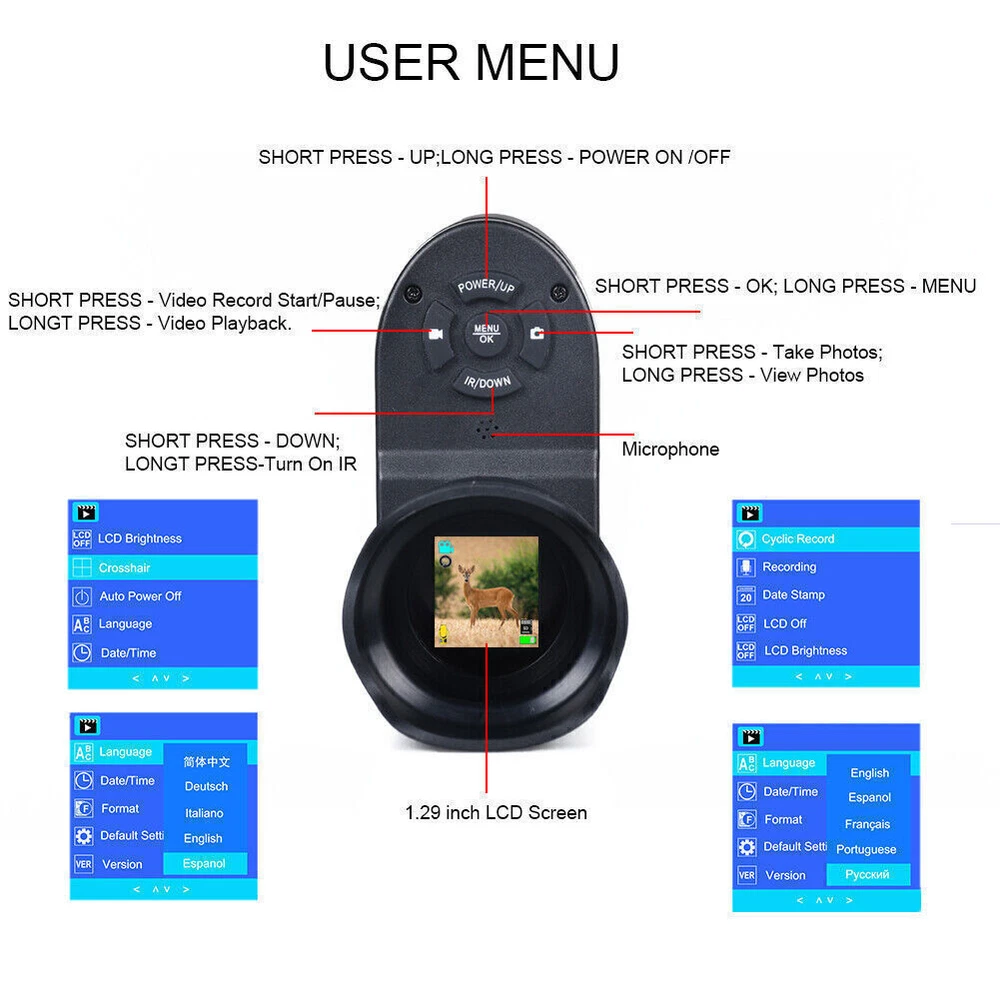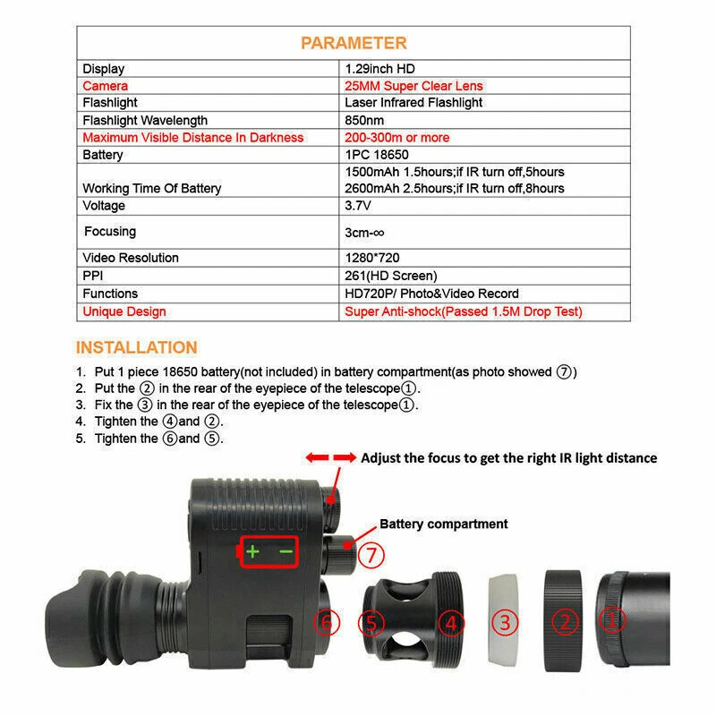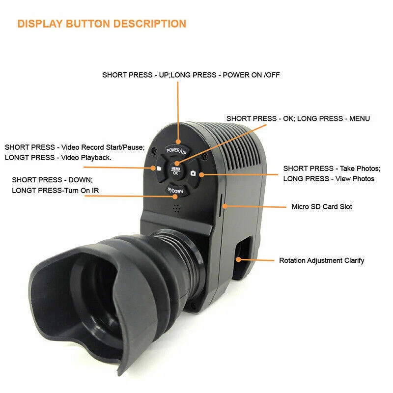 You may also like 5000Miles 532nm Green Laser Pointer Rechargeable Pen Visible Beam Light Lazer 9.49 USD Free shipping 5mW Adjustable Blue BLaser Pointer Visible Dot Torch Light 39.99 USD Free shipping Tactical Red Laser Beam Dot Sight Scope For Rail Weaver 8.88 USD Free shipping Tactical 45 Degree Offset 1" Scope Ring Flashlight Picatinny Light Laser Mount 7.99 USD Free shipping 1000Miles Green Laser Pointer Pen USB Rechargeable Visible Beam Light Lazer 6.99 USD Free shipping Tactical Mini Red Dot RMR Reflex Sight Scope for Glock 17 19 W/20mm Mount 29.88 USD Free shipping 2 MOA Shake Awake Red Dot Sight Scope for 1x20mm Sig Sauer Romeo5 SOR52001 M1913 52.99 USD Free shipping Red Laser Pointer Red Light Visible Beam Lazer Rechargeable USB Rechargeable 5.99 USD Free shipping Green dot laser sight rifle gun scope with Rail Mounts + Pressure switches 17.99 USD Free shipping 1000M USB Rechargeable 1mW Green Laser Pointer Pen Visible Beam Light Lazer US 5.99 USD Free shipping US STOCK compact 4X32 Compact Scope 223/ 308/ Crossbow Scope /w Rings With Clip 28.99 USD Free shipping 532nm Green Laser Pointer Visible Upgrade Dot Light USB High Power+5 Laser Head 31.99 USD Free shipping Set of Bike Turn Signals Light Tail Rear w/ Smart Wireless Remote Control USB 14.89 USD Free shipping WiFi Portable Wireless Camera HD 1080P Security Camera DVR B 22.99 USD Free shipping USB Rechargeable 990Miles Green Laser Pointer Pen 532NM Visible Beam Light 1mw 7.99 USD Free shipping Universal Barrel Clamp for Shotgun Rifle Flashlight Scope Tube Gun Mount Adapter 7.99 USD Free shipping TAC 2 in 1 Hunting LED Rifle Flashlight and Red Laser Sight Combo For 20mm Rail 37.99 USD Free shipping 8000m 532nm Green Laser Pointer Visible Beam Light Torch + 5x Caps + Battery 22.99 USD Free shipping Product Description Megaorei3 Night Vision Scope for Rifle Optical Sight Telescope Hunting Camera Description: 1. high seismic resistance: 1.5 meters free fall, you can fall at will (but the appearance will be scratched). 2. low power consumption: 200-300 meters can be used with only about 400 mA current. Less fever, more energy saving. 3. the screen is clear: using a 1.29-inch 261PPI display, there is no discomfort in long-term use, and it does not cause dizziness and dizziness, and is clear enough in a night vision environment. 4. high light transmittance: 25mm super clear 3 million pixel lens, excellent night vision effect. 5. function: 720P high-definition display with video recording and camera functions. Specification: Name: infrared night vision Color: Black Type: Standard/top configuration Voltage: 3.7 V Screen: 1.29 inch / 261 PPI Lens: 25 mm Ultra HD lens Focus: 3cm-∞ Anti-drop height: 1.5 meters Infrared wavelength: 850nm Effective viewing distance: 200-300 meters Support languages: Support multiple languages (English, German, Russian, French, Spanish, Portuguese, Italian). Battery: =Lithium battery (the standard configuration does not include battery, the top configuration includes) Verpackungsgröße: 203*163*84.5MM Weight: 1000g Top Matching List: 1 * Night vision all-in-one device 2 * Focusing lens 3 * Adapter 1 * Battery 1 * Battery charger 1 * 32GB TF card (as shown in the picture). Tips: 1. please accept 1-3cm error due to manual measurement. 2. due to the difference of light and screen, the color of the product may be slightly different from the picture. Payment Shipping Terms Returns Contact Us About Taxes 1. We accept payment via PAYPAL ONLY . 2. Payment must be made within 4 days of auction closing. (Non-payment may result in a UPI (Unpaid Item) being put on your account. eBay will automatically close your account if you accumulate 4 UPI's total.) 3. TOTAL AMOUNT DUE includes the final auction price plus S&H(Shipping and Handling). 4.S&H will be determined based upon the SHIP TO address, Tax and customs. PLEASE NOTE: S&H DOES NOT INCLUDE DUTIES, LOCATL TAXES OR ANY OTHER IMPORTATION FEES. We are not responsible for any custom duty or import tax. 5. Please list your special requests (color, packages, etc.) in the PAYPAL NOTES SECTION when you make payment. Our working hours Beijing time from 9:00 a.m. to 18:00 p.m . Monday to Friday Item will be shipped from US/DE/UK warehouse;within 1 days after payment received, usually delivery time 24-72 hours. Warranty: 1. One Year Manufacturer's Warranty for defective items (excluding items damaged and/or misused after receipt). Accessories come with a 3-month warranty. 2.If buyer requests a return when there is no quality problem of the item he received,return postage has to be paid by buyer,and postage for the item won't be returned. 3.If item is damaged or defective on arrival,buyer can either requests a refund or replacement,and postage will be paid by us,meanwhile,the item must be returned. Note: A. Customs duties is neither included in the item value nor the postage,which should be in the responsibility of buyers. B. Please check with your country's customs office to determine what these additional costs will be prior to bidding/buying. 1. You have 7 days to contact us and 10 days to return it from the date it was received. WE WILL ISSUE YOU A REFUND OR REPLACEMENT ! 2. All returned items MUST BE in the original packaging and you MUST PROVIDE us with the shipping tracking number , specific reason for the return, and your eBay ID . 3. We will refund YOUR FULL WINNING BID AMOUNT, upon receipt of the item in its original condition and packaging with all components and accessories included, AFTER BOTH Buyer and Seller cancel the transaction from eBay. OR, you may choose to have a replacement. 4. Return shipping is to be paid by the Buyer . Our office hours are: 9:00 a.m to 6:00 p.m (GMT +8) of Monday to Saturday. And our office is closed on Sunday and public holidays (China). We apologize for the late reply during the holidays. Anything,please contact us by ebay message,we'll service you asap!!! 1. We maintain high standards of excellence and strive for 100% customer