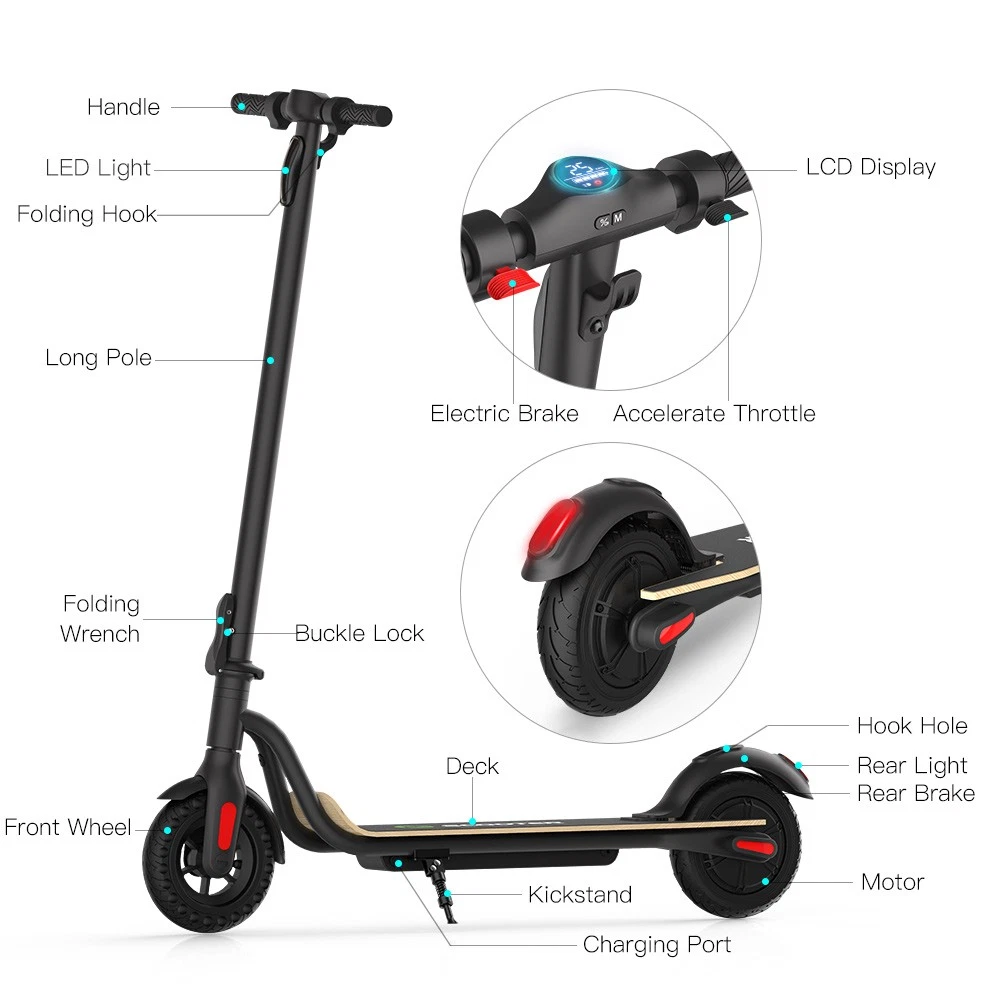 Features: 【Anti-puncture solid tires】The electric scooter uses 8.0-inch honeycomb shock-absorbing tires with high elasticity and wear resistance. The honeycomb tire does not require inflation, repair, maintenance.And it's don't worry about punctures.It also has a good anti-slip effect. 【Three gears with headlight & rearlight】Three gears (6.25MPH=10KM/H, 12.5MPH=20KM/H, 15.5MPH=25KM/H), easy to change through a button on the LED display which also shows the battery and the gear clearly. The low-speed gear prevents teenagers or children from driving too fast. LED Headlight and rearlight double insure your safety at night. 【High level security】This S10 electric scooter applies dual brake system (a motor electronic brake on the handlebar and a foot friction rear brake on the back wheel) with CE/UL/FCC/RoHS safety certification. The pedal is made of Malleable Maple Wooden, which is more durable. You can easily cross all kinds of roads, reduce bumps and keep you feel comfortable. 【None-0 start】The electric scooter applies a none-0 start for the safety consideration, please scroll for a distance to start. Features a bigger and longer deck, a double braking system, a long-range battery, and a One-step portable folding mechanism, the Megawheels electric scooters can bring a smooth and comfortable riding into your way.We provide professional technology support. Any question, just contact us, we will reply in 24 hours with satisfying solutions. Specification: Brand: Megawheels Model: S10 Dimension: Unfolding 105 x 43 x 118 cm; Folding: 105 x 43 x 48 cm Net Weight: 11.9kg Color: Black Frame Material: Aluminium Tires: 8.0" Honeycomb Front Tyre & Solid Rear Tyre Max speed: 15MPH Speed level: Gear 1--Max 6MPH; Gear 2--Max 12MPH; Gear 3--Max 15MPH Grade Ability: 20 degree slope Working Temperature: -15°C-50°C Storage Temperature: -20°C-25°C Mode Type of Motor: Brushless hub motor Battery Type: High quality lithium battery Battery Voltage: 36V Charger Input Voltage: 100V-240V Charger Frequent: 50Hz/60Hz 5.2AH Version Mileage: 8-12KM Max Load: 100kg Charging time: 3.5 hours Battery Capacitiy: 5.2 Ah 7.8AH Version Mileage: 17-22KM Max Load: 100kg Charging time: 5 hours Battery Capacitiy: 7.8 Ah Package Contents: 1 * Folding Electric Scooter 1 * Battery Charger 1 * User's Manual Note: This products have been certified under UL2272 safety standards. NOTE:The appearance of the product you receive may vary slightly from the image shown due to differing production batches! Riding Skills: -Put your foot in the front of the scooter and the other foot on the floor before riding. -Make sure that the riding route is smooth. -Slide forward with the food standing on the floor before starting (like riding the scooter without power). -Immediately press the acceleration button and lean forward to avoid falling over backward due to inertia, so that the electric scooter will enter the working status. -Avoid pressing the handle with your body in the acceleration and deceleration process. Put one foot ahead and the other behind (like on the sliding plate/surfboard, put one foot ahead and the other behind by 70-90 for better comfort). -Turning – The turning principle of the electric scooter is the same with that of surfboard/sliding plate/skis. The handle shall be balanced with the body. Observe and make sure that turning is safe before turning. On Jul 11, 2025 at 08:06:00 PDT, seller added the following information: