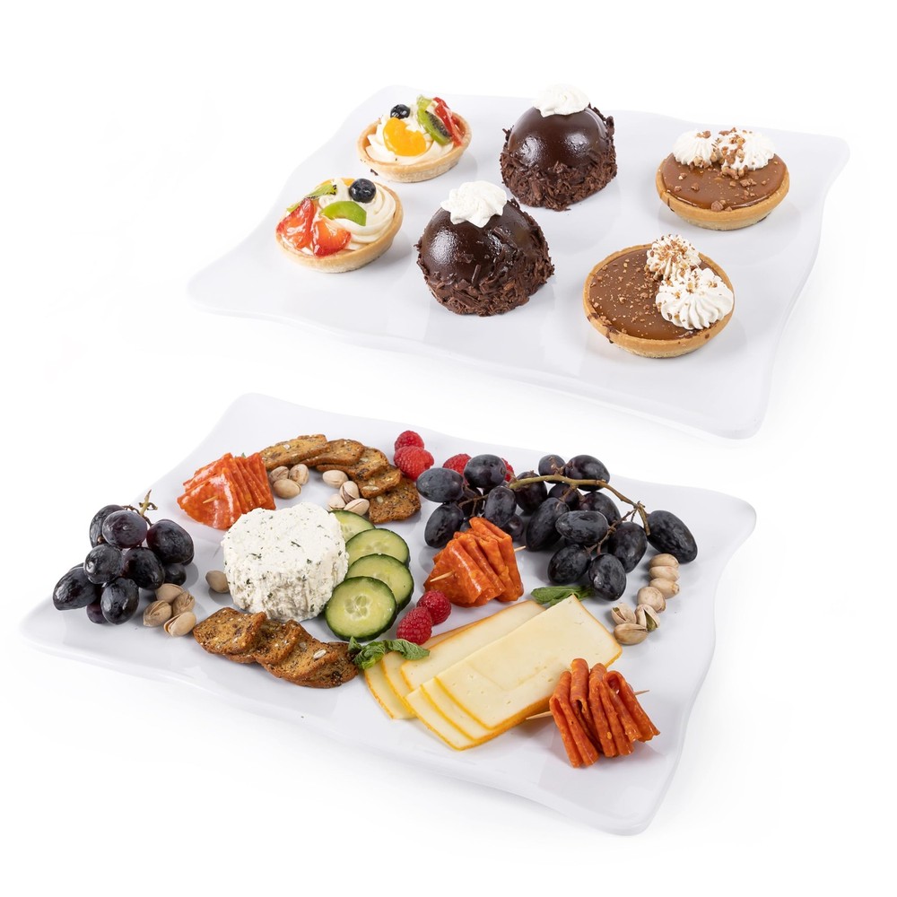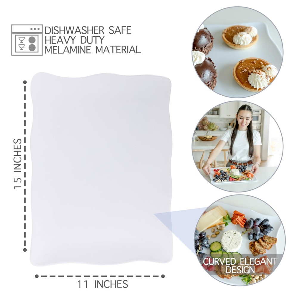 Transform your hosting experience with the Melamine Large Plastic Serving Platters and Trays. These versatile trays are a must have for anyone looking to elevate their serving game, whether you're preparing a stunning catering supplies buffet display or simply organizing a casual get-together. Designed with functionality and elegance in mind, these large serving trays for party are perfect for showcasing everything from appetizers to desserts. The extra large serving tray with handles offers easy portability, making it ideal for a food serving trays for party buffet setup. Whether you're presenting a vibrant fruit tray for party or arranging hors d'oeuvres, these plastic platters for serving food party are up to the task. With a sleek rectangular design, this set doubles as a kitchen counter tray, adding both style and practicality to your space. Use it as a tray for kitchen counter to organize essentials or as a chic backdrop for your buffet table. The durable plastic construction ensures that these serving trays for party buffet are lightweight yet sturdy, providing a reliable option for any event. Perfectly sized for versatility, these trays cater to a wide range of serving needs. From a colorful salad serving trays for party to elegant serving plates for parties, their generous dimensions make them suitable for any dish. Ideal for large gatherings, the fruit trays for serving for party and large platters for serving food party ensure you have ample space to create impressive displays. Whether you're hosting a formal event or a casual family dinner, these 2 tier serving tray and platters deliver convenience and style. Reuse them for multiple occasions or use them as plastic serving plates for effortless cleanup. Enhance your entertaining game with these large fruit trays for serving for party—an essential addition to your party fruit tray collection Generous capacity: This extra large serving platter measures 15x11 inches with a thickness of 0.86 inches, making it perfect white serving dishes for entertaining as vegetable tray, chicken, turkey serving platter, food trays for party, cookies, party snack tray. Ideal for gatherings, this large melamine serving platter offers ample space for effortless serving Superior quality: Crafted from 100% melamine, these white serving platters set is BPA-free, built to endure more temperature resistance than standard plastic trays. Unlike ceramic material, it is shatterproof, crack-proof, & scratch-proof, ensuring durability. This meat serving platter combines function & quality for reliable use in any setting Elegant design: Thanks to its smooth inner surface, this large white serving platter offers effortless cleaning & attractive appearance. These plastic serving trays rectangular features a stable, modern design in an elegant white color that enhances presentation. Whether used as veggie tray or more, these snack trays for party blend practicality with style Wide application: These outdoor serving platters & trays is ideal for versatile usage, from parties & grilling to creating stunning charcuterie trays for party. The rectangle serving platter adapts to any theme, offering functionality & sophistication, while the grilling serving platter provides a perfect base for presenting delicious creations Safe to use: While this large fruit platter tray for parties is dishwasher-safe for quick cleanup, it is not recommended for microwave use. These large plastic trays for serving food are perfect for entertaining and simplify serving without compromising on elegance or practicality