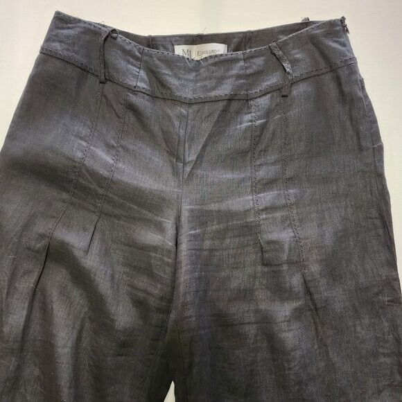 Melanie Lyne Black 100% Linen Pleated Front High Rise Wide Leg Pants style tags: career, business casual, mature, loose, comfy, lagenlook Women's 12 Waist: 32" Rise: 10" Inseam: 30" Good used condition: no rips, marks or stains.