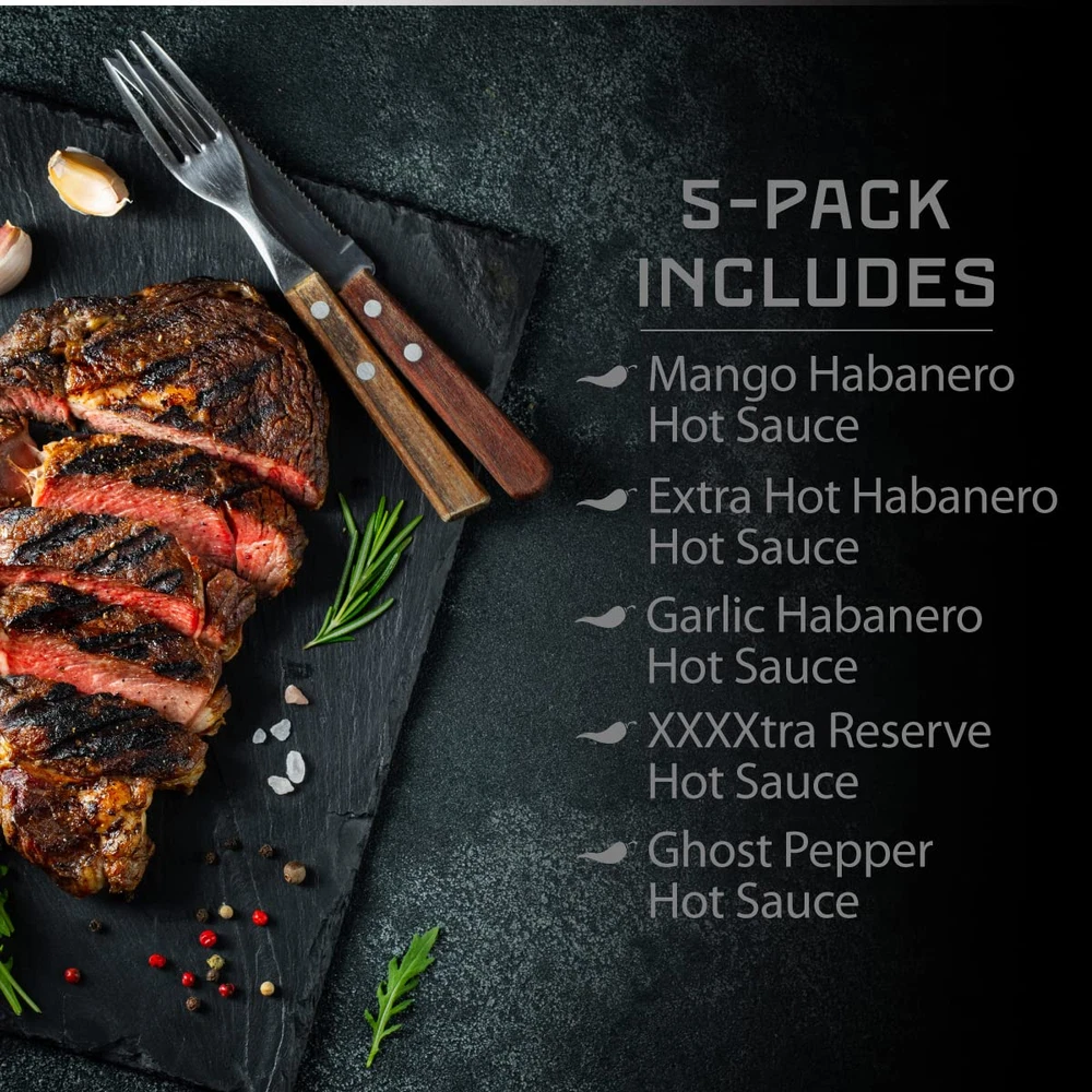 Store New Arrivals Add to Favorite View Feedback Contact Melinda’S Hot Sauce Variety Pack - Extra Spicy Gourmet Hot Sauce Gift Set with Variety of Heat Levels - Includes Xxxxtra Reserve, Garlic Habanero, Extra Hot, Mango, Ghost Pepper- 5 Oz, 5 Pack Description Units 25.0 Fluid Ounces Package Dimensions 12.99 x 8.54 x 2.36 inches; 5 ounces Flavor Name Variety 5 Pack Manufacturer Melinda's PERFECT GIFT FOR HOT SAUCE LOVERS: Melinda’s Hot Sauce Variety Pack is for chileheads that want equal parts flavor and heat! This hot sauce variety pack features 5 of Melinda’s finest and most flavorful habanero hot sauce. Try the Mango Habanero for something tangy and sweet. For “chileheads”, use Ghost Pepper Hot Sauce for maximum heat with a chile-forward punch of flavor. SET YOUR MOUTH ON FLAVOR: This pepper sauce sampler doesn’t just bring the heat, it brings top shelf flavor too. Our Habanero hot sauces are packed with addicting flavor and a fiery pepper kick. Whether you’re looking for something tame or throat-burning, the Habanero Variety pack has you covered! WHOLE, FRESH INGREDIENTS: Real ingredients like fresh garlic, onions, mango, lime juice & carrots and the best peppers on the planet, at Melinda’s we craft condiment sauces with whole, fresh ingredients for people who care about those kinds of things. LEVELED UP FOOD, EVERYDAY PRICE: Level up your favorite dishes with a different hot sauce for every occasion from the Habanero Variety Pack! For a whole lot of flavor and a bit of heat, try the Garlic Habanero on pasta or pizza. Our Extra Hot Habanero is great in tacos and soups. Add a dab of Ghost Pepper Sauce to practically everything. MADE THE MELINDA’S WAY: At Melinda’s, our philosophy is simple: heat and flavor mean everything. We pride ourselves on striking that perfect balance of heat and flavor in every sauce we make so that you can have an eating experience unlike any other. Product description The video showcases the product in use. The video guides you through product setup. The video compares multiple products. The video shows the product being unpacked. hero-video Merchant Video ABOUT US We offer the best prices around on high quality products. Our E-store includes media such as books, movies, music and games while offering electronics, toys, sporting apparel, clothing, tools, general home, garden items and more. SHIPPING We are always working hard to ensure your package arrives as soon as possible. Please understand that some factors like weather, high postal traffic, and the performance of shipping companies are outside of our control. We offer free shipping to the lower 48 states and ship within 2 business days of payment, usually sooner. We do not accept P.O. Boxes. Please provide a physical address. RETURNS We offer a 30-Day Return Policy on items which you are not completely satisfied with. You have the option for a full-refund or an exchange of the item. No returns are available on items shipped outside of the USA. PAYMENT We accept PayPal. CONTACT US This page content is yet to come Please ad us to your favorite seller and visit again later Thank You CUSTOMER SATISFACTION We try our very best to make sure every customer is completely satisfied. If there's a problem, message us! We're happy to help.