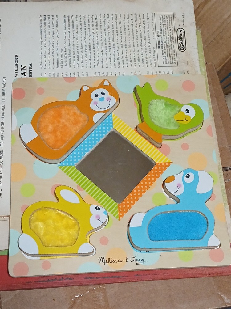 The product is a used Melissa & Doug wooden puzzle designed for early learning with a tactile peek-a-boo element featuring various pets. With less than 15 pieces, this puzzle is suitable for children aged 1-4 years. The high-quality wood material adds a touch of durability and charm to the toy, making it a great option for young children to engage in interactive play and develop problem-solving skills.