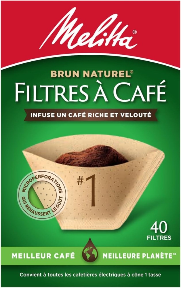 Melitta #1 Cone Coffee Filters, Unbleached Natural Brown, 40 Count (Pack of 12) 480 Total Filters Count - Packaging May Vary Product Details Material: Paper Brand: Melitta Shape: Conical,Basket,Cone Number of Pieces: 40 Unit Count: 480 Count Manufacturer: Melitta Product Dimensions: 10.6 x 3.6 x 5.5 inches Item Weight: 1.44 ounces Item model number: 620122 Is Discontinued By Manufacturer: No Cone Coffee Filters: Premium cone coffee filters will fit all 1 cup electric coffee makers that have a conical shaped filter basket; Traps more bitter oils for a better cup of coffee Advanced Design: Our coffee filters feature Microfine Flavor Enhancing perforations that allow the full coffee flavor to filter through and a double crimped filter design to help protect against bursting Number One Coffee Filter Brand in the World: Our cone, basket and single serve filters are all designed to brew rich, flavorful coffee; They are all compostable and made of high quality paper that won't tear for mess-free brewing Optimal Brewing: Our products are designed to provide optimal extraction resulting in a rich and flavoful cup of coffee which is never bitter Join the Pursuit for Better Coffee: Melitta is dedicated to providing the ultimate coffee experience with our premium coffee filters, coffee pods, pour-over brewers, coffee makers and premium coffees Our founder, Melitta Bentz, invented coffee filters and pour-over brewing in 1908. For over 100 years, Melitta has remained a pioneer in coffee, coffee filters and coffee brewers. Our paper filters are 100% biodegradable. We offer filters for cone, flat bottom basket, percolators and single serve coffee brewers. Our filters are produced using chlorine-free white, natural brown and bamboo paper. In addition to filters, we offer a wide range of coffees and brewers including pour- overs, carafes, pour-over kits, coffee makers, kettles, drip coffeemakers, and even our own premium, batch-roasted coffee. Our coffee beans are sourced from farms located in prime coffee-producing regions. We batch roast and grind our beans extra fine in true European fashion - bringing out the coffee's full flavor. Enjoy our entire range of ground coffees, whole bean coffees, and single serve coffee pods.