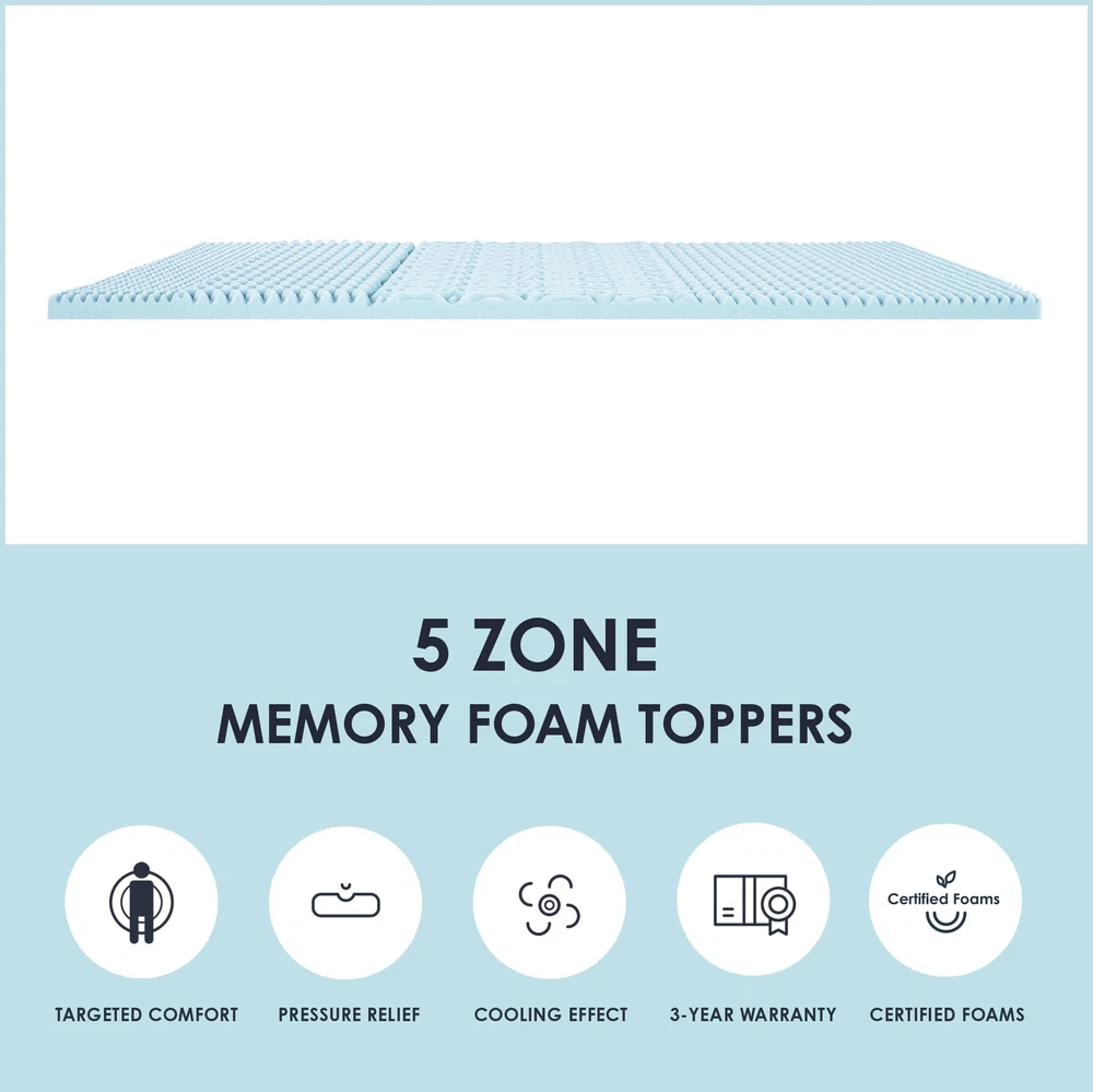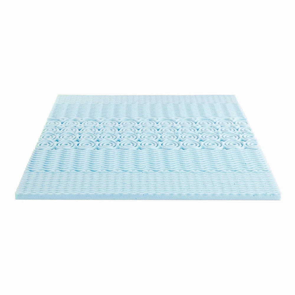 Mellow's 1.5-inch 5-zone memory foam topper with cooling gel infusion is a premium memory foam mattress topper made with CertiPUR-US certified foam that instantly revamps your mattress for maximum comfort and better sleep. Our topper features 5 body zones with different points of contact that relieve pressure points all throughout the body to prevent tossing and turning. Its breathable body-conforming memory foam is infused with gel to help reduce trapped body heat, keeping you cool and your mattress fresh. Memory foam, known for its responsive active suspension, isolates motion to provide undisturbed sleep for you and your partner. The topper is delivered straight to your door in compact packaging with easy setup and a 3-year manufacturer's warranty. Enhance your sleep quality in seconds by adding this 1.5-inch body-conforming memory foam topper to any mattress or sleep set Designed with 5 different body zones to relieve pressure points all throughout your body for maximum comfort Sleep cool with a gel infusion that helps prevent heat from being trapped Low motion transfer with responsive memory foam helps you and your partner enjoy deep sleep with less disturbance CertiPUR-US certified memory foam, 3-year manufacturer's warranty