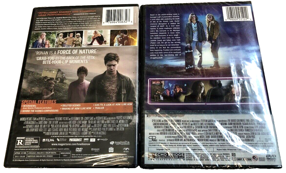 Bundle of 2 DVDs How I Live Now R 2013 starring Saoirse Ronan Anthem of a Teenage Profit not rated 2019 starring Juliette Lewis and Peyton List Condition New in original packaging See pictures for details Please contact us with any questions or concerns. Thanks!