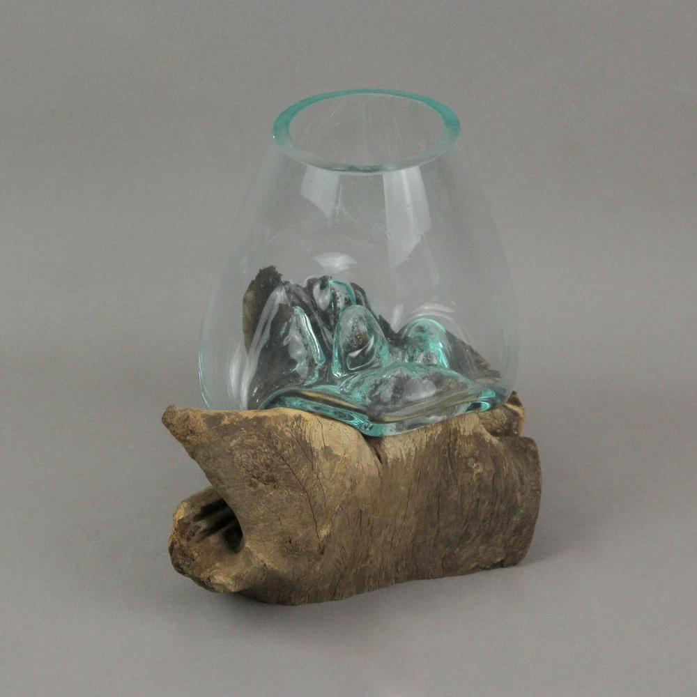 Exceptional Dimensions - Each piece measures 7 inches long, 6 inches high, and 6.25 inches wide, but the handcrafted nature ensures slight variations in size and shape, making each sculpture one-of-a-kind and uniquely yours. Artistic Craftsmanship - Crafted with precision, the molten glass vase gracefully melds with the natural teak driftwood base, creating a stunning, earthy sculpture. Its quality construction speaks volumes, showcasing an exquisite blend of artistic prowess and natural beauty. Our eBay Store About Us Add to Favorite Sellers Handcrafted Melted Glass and Teak Driftwood Centerpiece Bowl / Sculpture- Unique 7-Inch Earthy Artistry for Succulents, Terrariums, and Decorative Displays Exceptional Dimensions - Each piece measures 7 inches long, 6 inches high, and 6.25 inches wide, but the handcrafted nature ensures slight variations in size and shape, making each sculpture one-of-a-kind and uniquely yours. Artistic Craftsmanship - Crafted with precision, the molten glass vase gracefully melds with the natural teak driftwood base, creating a stunning, earthy sculpture. Its quality construction speaks volumes, showcasing an exquisite blend of artistic prowess and natural beauty. Incomparable Uniqueness - These pieces boast individuality, with clear glass bowls meticulously formed over organic wood bases. The resulting glass scape bottom adds a touch of elegance, making them ideal for adorning tables, counters, or desks, infusing your space with natural charm. Versatile Natural Accent - Embrace the organic allure with these sculptures that serve as perfect homes for succulent gardens, air plants, greenery, or herbs. They double as decorative desktop terrariums or fairy gardens, allowing you to craft imaginative and unique displays that reflect your creativity. Thoughtful Gift Choice - Whether you're treating yourself to a piece of nature-inspired artistry or surprising friends and family, these sculptures make exceptional gifts. Their artistic allure and versatile usage make them a delightful present, capturing the essence of creativity and natural elegance. Embrace the fusion of nature and artistry with this versatile sculptural vase, a captivating blend of glass and wood that exudes rustic charm and organic allure. The teak driftwood base gracefully intertwines with the molten glass, forming unique contours that echo the natural world. Standing at approximately 7 inches long, 6 inches high, and 6.25 inches wide, each piece is a testament to nature's craftsmanship, ensuring no two are alike. This decorative marvel invites endless possibilities; use it as a terrarium, a succulent planter, or a centerpiece for your table. Fill it with vibrant succulents, cascading vines, or colorful stones and shells. Craft a fairy garden or let it hold dried flowers, allowing your creativity to shape its purpose. The artistic interplay between the driftwood's rustic texture and the translucent elegance of the molten glass creates a visual symphony, adding an enchanting touch to any space. Whether adorning your living room, patio, or office, this sculptural vase infuses your decor with a touch of boho chic, making it a conversation starter and a testament to your unique style. Unleash your creativity and let this masterpiece reflect your imaginative spirit and love for natural beauty. Product Details Color Brown Height 6 Length 7 Weight 3.3 LB