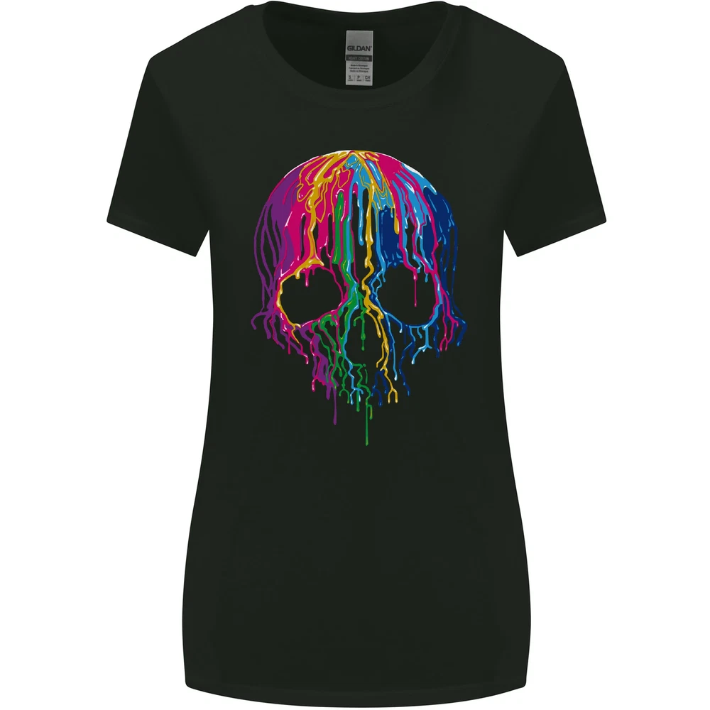 Melting Skull Biker Motorcycle Gothic Womens Wider Cut T-Shirt