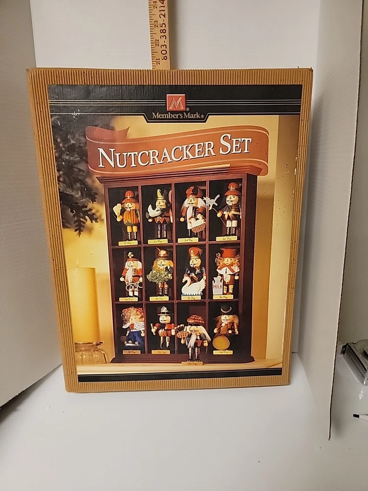 Year Manufactured: 2004 Subject: 12 Days of Christmas Ornament Time Period Manufactured: Current (1991-Now) Theme: Christmas Personalize: No Vintage: Yes Number of Items: 13 Type: Nutcracker Franchise: Nutcracker Year: unknown Handmade: No Size: Medium Item Height: 20 in Material: Wood Brand: Member's Mark Modified Item: No Shape: Rectangle Age Level: Over 18 Years Pattern: Abstract Occasion: Christmas Collection: Christmas in the City MPN: Does not apply Country/Region of Manufacture: Unknown Department: Adult Antique: No Style: Classicism Color: Multicolor