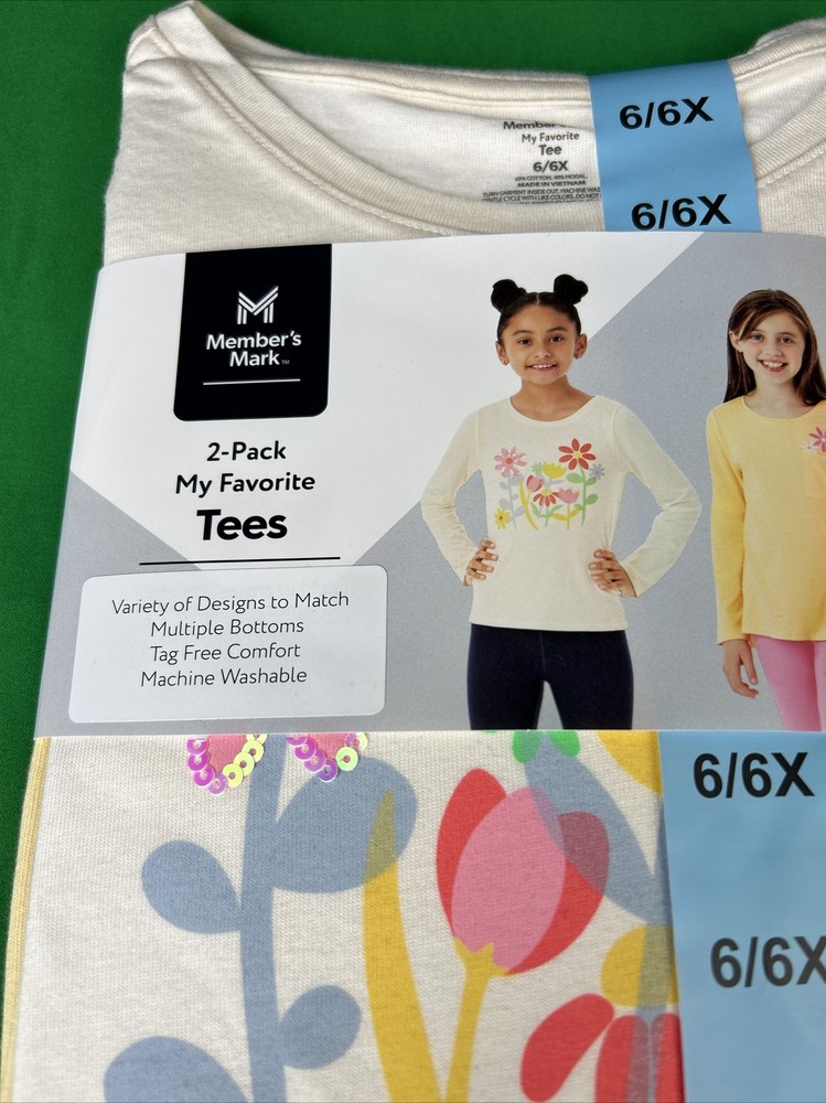 NEW ITEM !!! Will be shipped in a secure package. Buy with confidence, hassle free return policy. Members Mark 2 pack My Favorite Tees FLOWER SIZE 6/6X Multiple bottoms Tag free Comfort Machine washable Shipping Shipping is FREE to all addresses in the lower 48 states. Our stock all ships from our US-based warehouse. Shipped via USPS or FED-EX(depending on location and package weight) Unless stated otherwise, all orders will ship within 1 business day of your payment being processed. Check our feedback to see the great reviews of FAST shipping we offer. PAY SAFE: PAYPAL PAYMENT IS ACCEPTED Returns We offer a 30-day return policy for our products. We are not responsible for any purchase after this 30-day period. If you have any questions please contact us through "Ask seller a question" link. We will respond within 1 business day or less. All returns must be done within 30 days of the date of purchase. Please note that we cannot give refunds after the 30 day limit has expired. When sending in a return, please note that it can take up to 7 business days for the return to be processed. We do our best to process as quickly as possible. ELECTRONIC PRODUCTS Our electronic products are manufactured according to the specifications of the US Electrical Standards and Codes. If you purchase these products to use in a country outside of the United States we cannot guarantee they will work properly. We assume no responsibility if the items malfunction or cause an accident because one tried to use the product with foreign electrical standards.