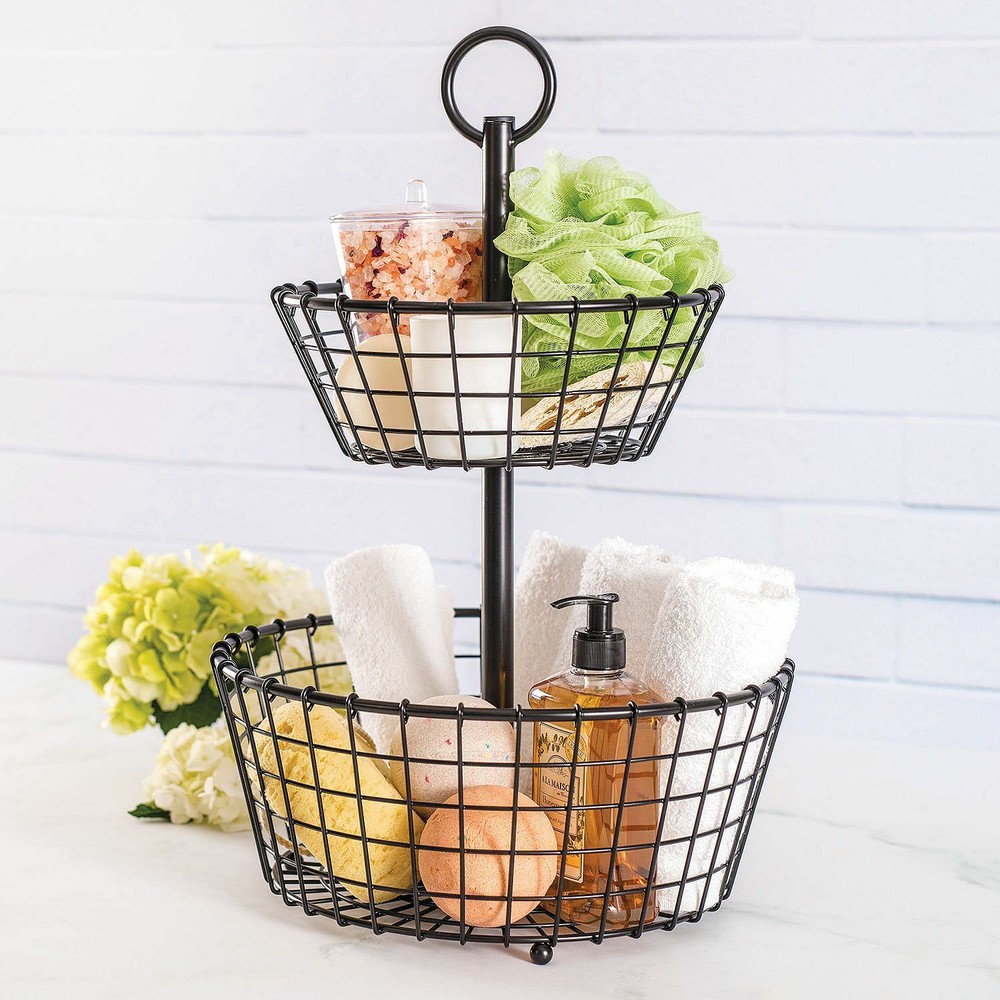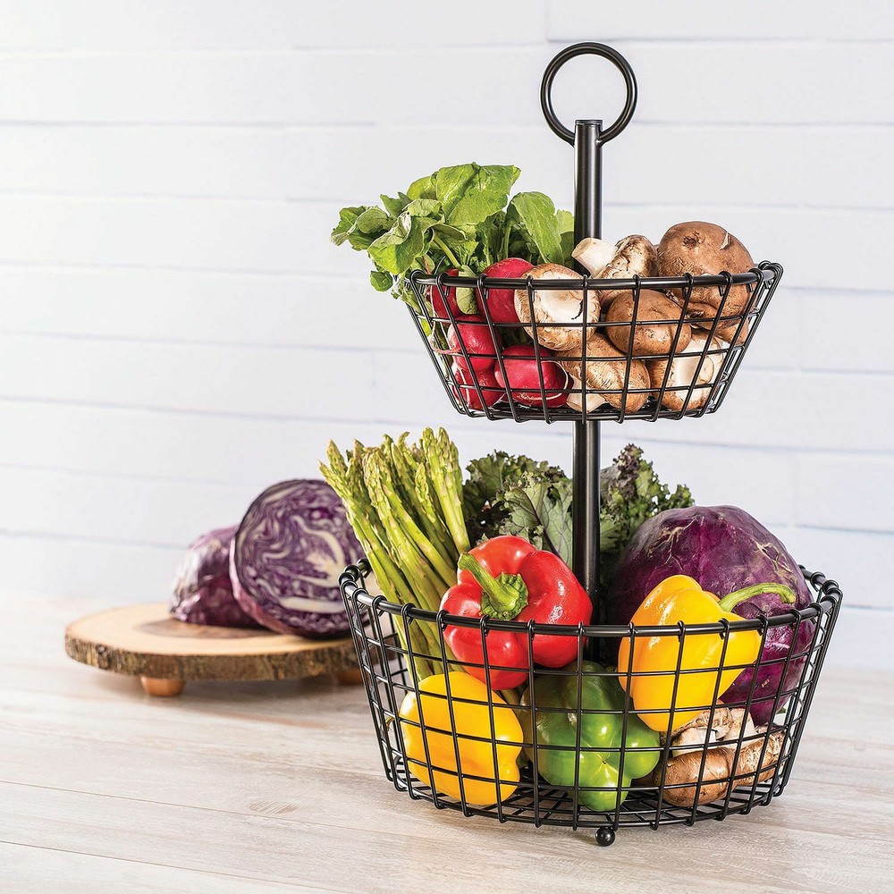 Two Tier Metal Storage Basket Shipping & Handling Our standard shipping service is usually fast, orders will be processed the next business day after your payment is received. Transit times can vary from 2-5 business days depending on your location. Expedited shipping usually takes 2 to 3 business days. Currently we only ship to the continental USA and cannot service APO addresses. Expedited shipping is available for all of our items. We only ship to confirmed Paypal addresses and reserve the right to cancel any order for any reason at anytime. We are not responsible for undeliverable addresses provided to us. Additional Information To bring our customers the very best service we stock all products being sold on eBay in our own warehouse. Our team is here to expertly pick and pack your order with care. If we are unable to fill an order for any reason we will notify you. Please shop our ebay store for more Great Products! Product Description You will love the classic look of this Two-Tier Metal Basket for all your decorative storage needs. Handcrafted and made of wrought iron with a durable black matte finish, this stylish basket will keep its beauty through years of use. The open weave design is not only visually appealing, but it’s also great for preventing moisture from building up when storing fruits and vegetables in the kitchen. This two-tier basket would also make a stylish addition to your bath countertop or guest bedroom – practically anywhere you could use an extra bit of storage help. Features & Benefits Handcrafted wrought iron construction Nest for compact countertop placement Fixed loop handle on top for easy, one-handed transit Customer Service Thank you for shopping with us. We are striving to bring you a better buying experience. If you have any questions or concerns please ask our customer support team. We will gladly help resolve any issues you might have. Return Policy In the event that you would like to return your purchase, we allow returns that are processed within 30 days of purchase. A Return Merchandise Authorization (RMA) number is required for all returns. Please message us for return instructions or you may use the eBay return system. Items that have been received defective or damaged must be packaged in their original retail packaging as if new and returned with a detailed description of the problem. We are unable to accept any items that have been used or worn. Please pack all returns appropriately and use a reputable carrier service when returning your goods. Return shipping fees are not refundable.
