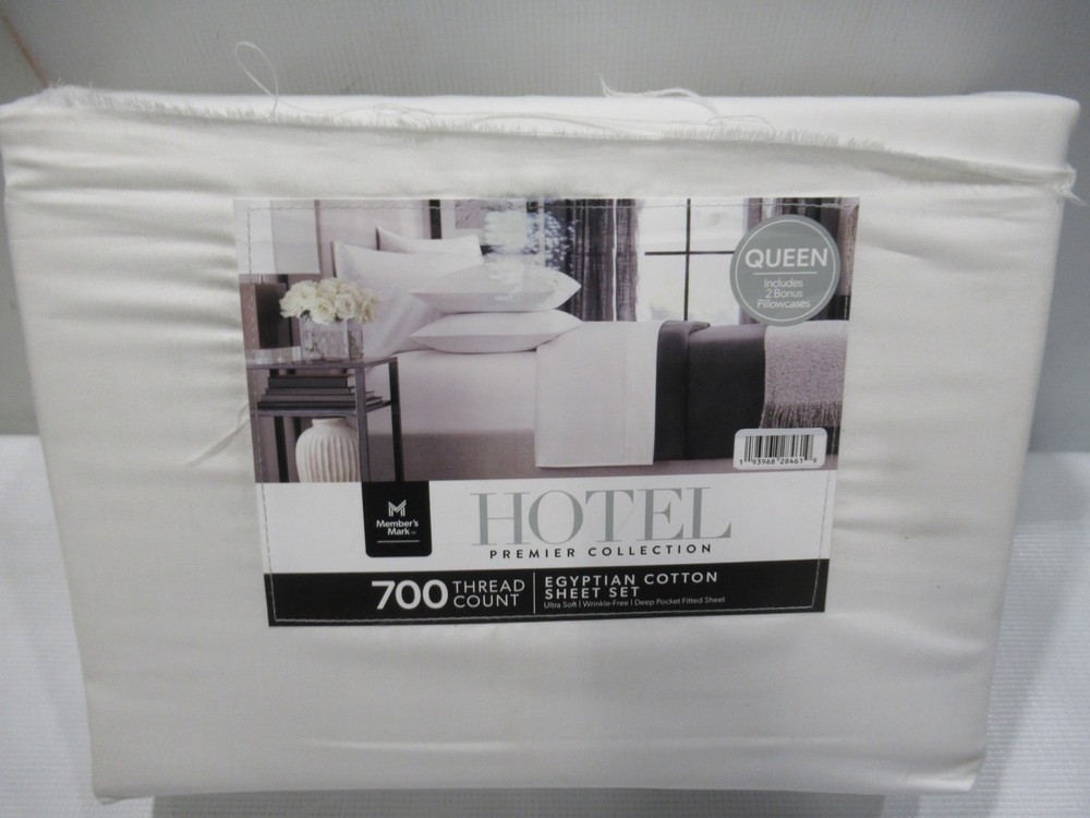 Enjoy the luxurious hotel quality of our 700-thread-count Egyptian cotton solid sheet set. These wrinkle-free sheets feature sublime softness, look great and stay soft and smooth right out of the dryer. High-end Hotel Luxury at Home Improve sleep quality and comfort with hotel luxury 700-thread count sheets made with 100% Egyptian cotton long staple fibers to produce a smooth, supple touch. Extensively wash-tested for performance and quality with a noticeably softer feel. Quick-drying, Wrinkle-free Egyptian Cotton Made from premium Egyptian cotton, this set of pillowcases has quick-drying and wrinkle-free properties that make it easy to care for. You will treasure these luxurious pillowcases for years to come, wash after wash. Flex-Fit Stretch Keeps Your Sheets From Shifting The oversized flat sheet and True Grip™ fitted sheet stay in place on mattresses 7" to 20". These sheets have an extremely high thread count. The higher the thread count (numbers of thread woven per square inch), the better the quality. Finer yarns and low pick insertion guarantee softness and durability. Queen Set: Fits up to 20” thick mattress Flat Sheet: 92" x 108" Fitted Sheet: 60" x 80" x 18" drop 4 Standard Pillowcases: 20" x 32" Highlights High-thread-count Egyptian cotton for sublime softness Woven from premium 100% Egyptian cotton Fresh and Clean finish inhibits the growth of bacteria Wrinkle-free and ultra-soft Patented True Grip fitted sheet Listing and template services provided by inkFrog