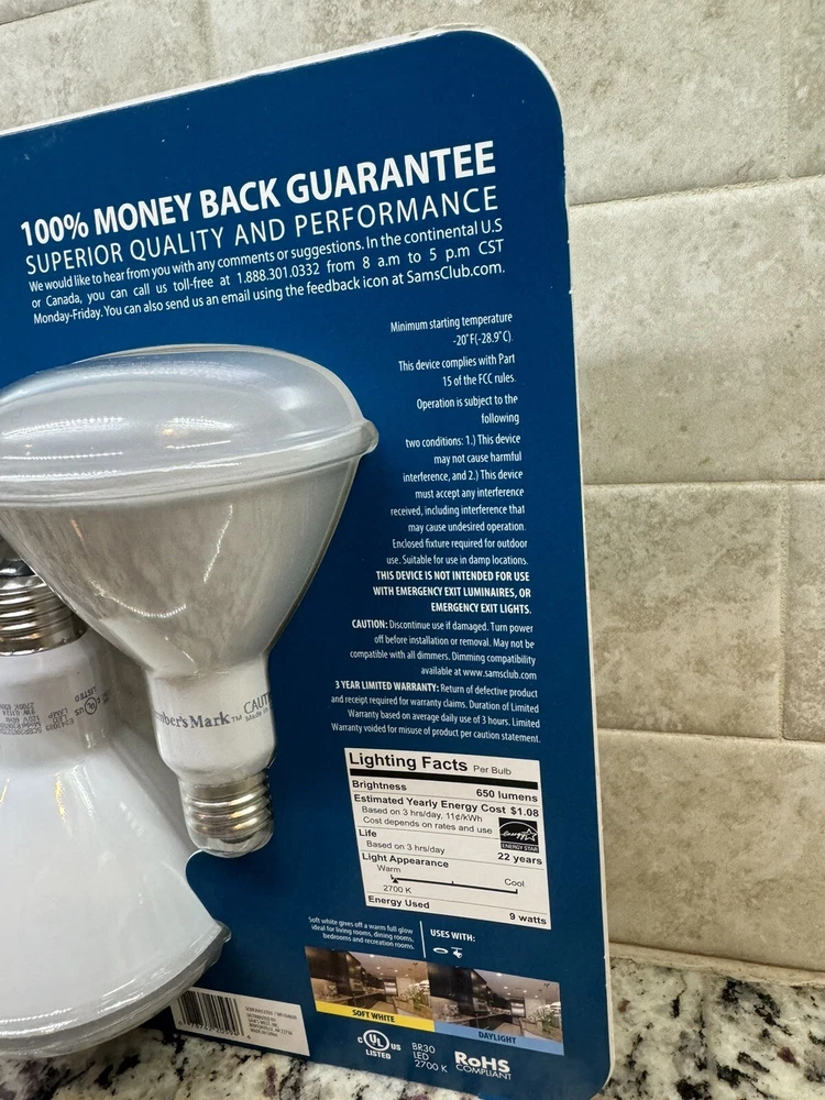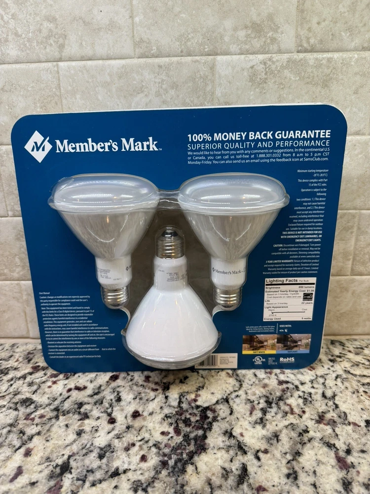 This 3-pack of Member's Mark LED flood lights offers bright, energy-efficient lighting for any space in your home. With a total of 700 lumens, these dimmable bulbs provide a daylight color that's perfect for reading, working, or relaxing. Each bulb has a BR30 shape and a 65-watt equivalent wattage, making them ideal for use in recessed lighting fixtures or track lighting systems. The LED technology used in these bulbs means they'll last longer than traditional incandescent bulbs, saving you money on replacements and energy costs. And with a custom label of SAM-NEW-980003337-DAY, you can be sure you're getting a high-quality product that will meet your lighting needs for years to come. Shipped with USPS fedex or ups depending on location. I entertain it all offers so send me one and I’ll reply quickly.