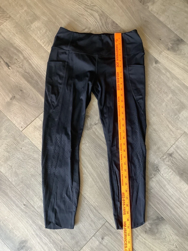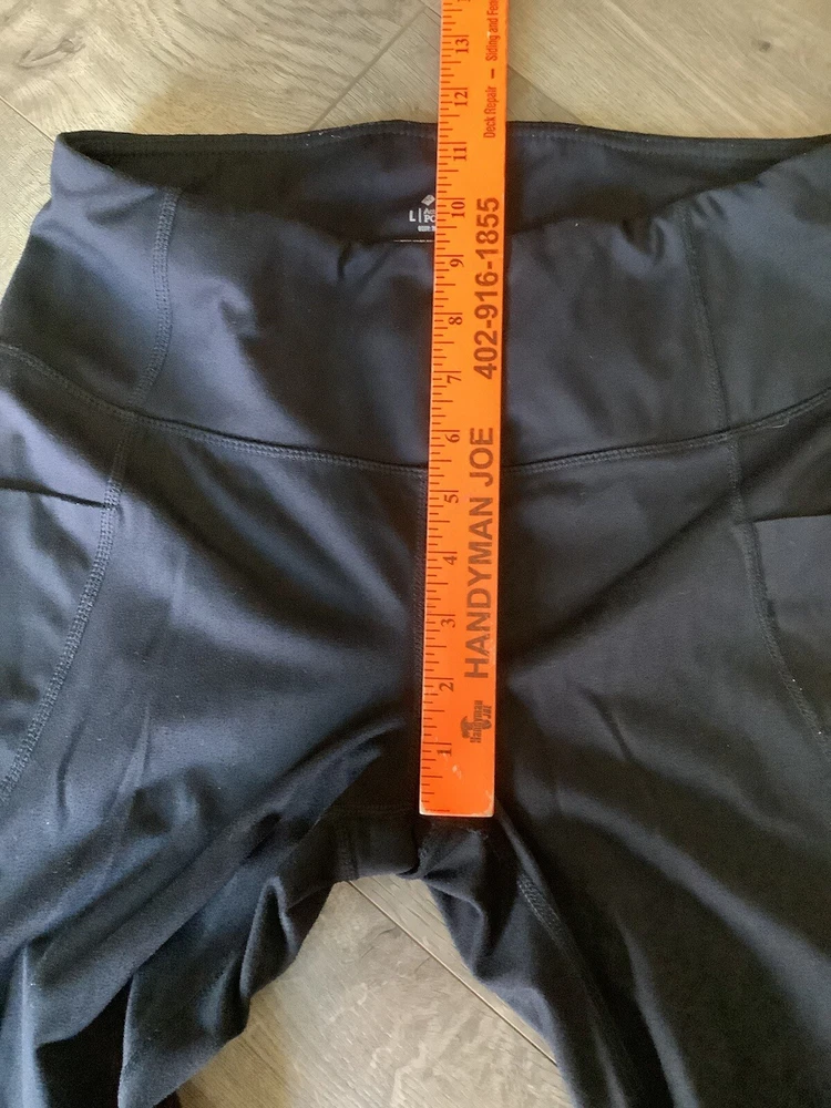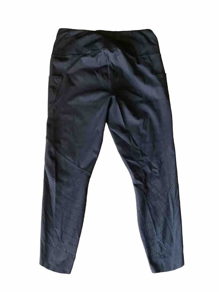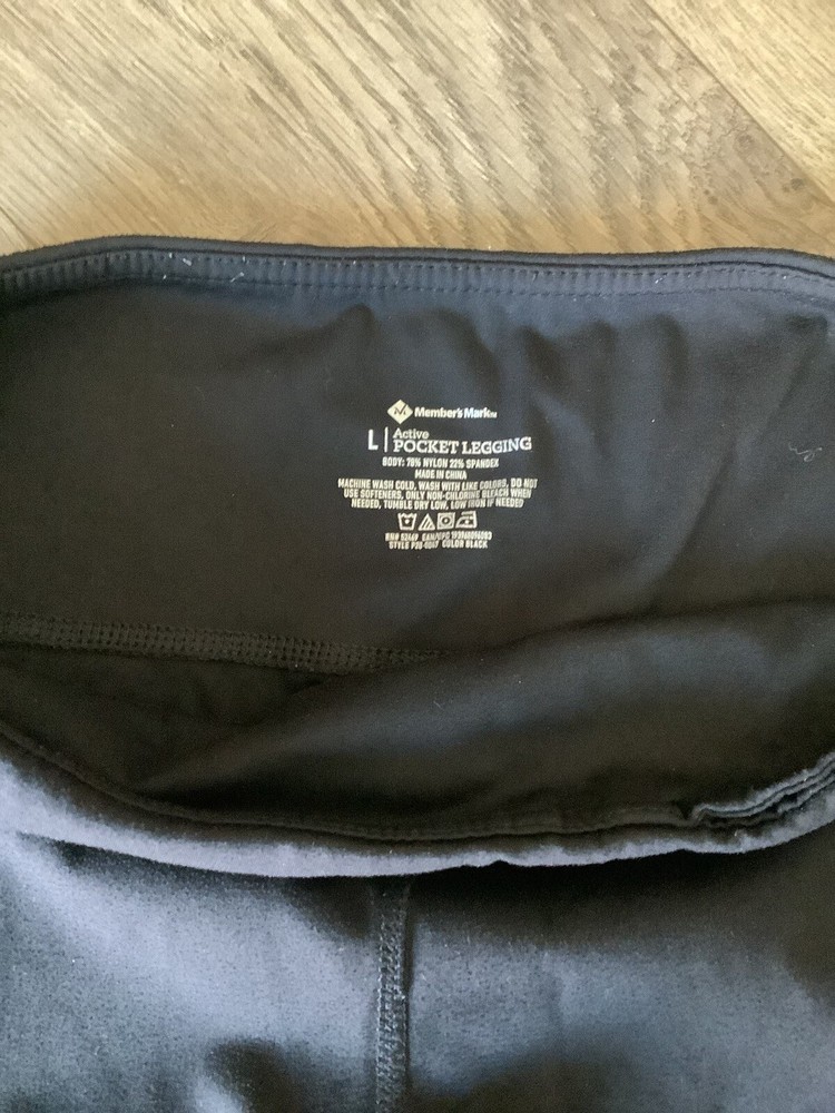 Elevate your activewear game with these Members Only black capri ankle leggings in size L. These athletic leggings are made of a comfortable blend of nylon and spandex fabric that is easy to care for and breathable. The elastic waist, tapered leg style, and 23-inch inseam provide a perfect fit for everyday wear or running and jogging. Featuring a media pocket and multiple other pockets, these leggings are perfect for carrying your essentials on the go. The compression area targets both the abdomen and legs, providing support for an active lifestyle. The solid black design is perfect for both casual and activewear occasions. Pet free and smoke free household