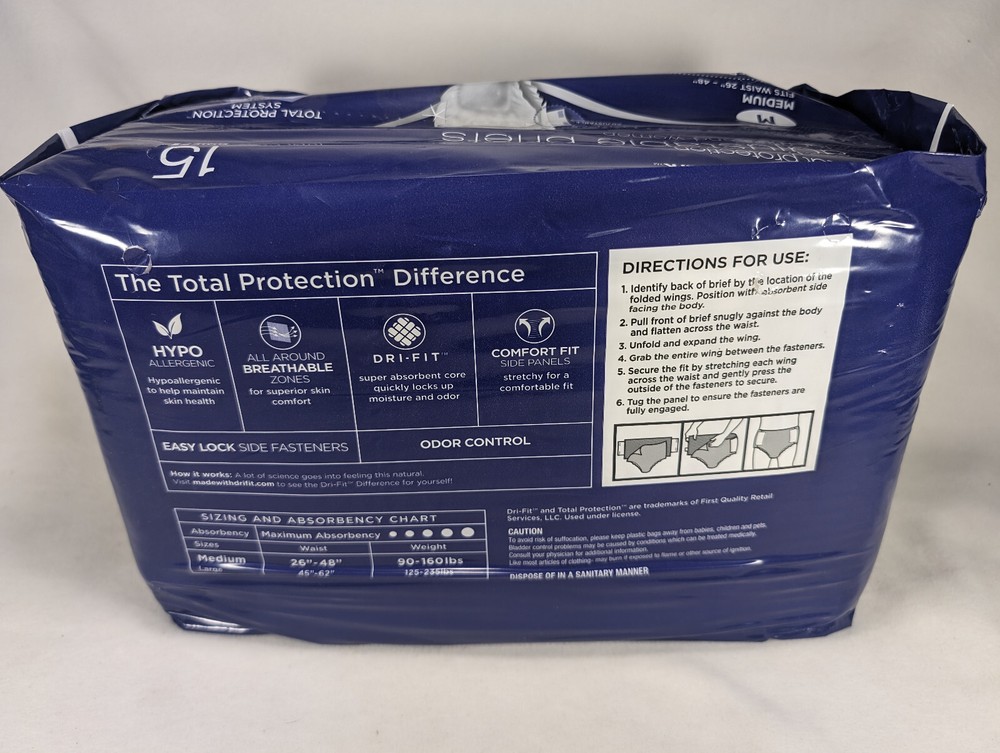 Members Mark Total Protection Adjustable Briefs Men & Women Medium pack of 15