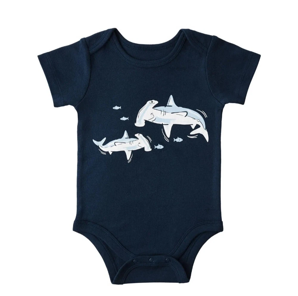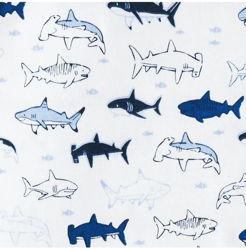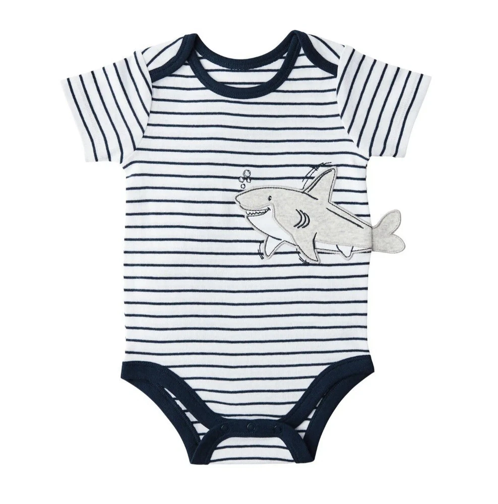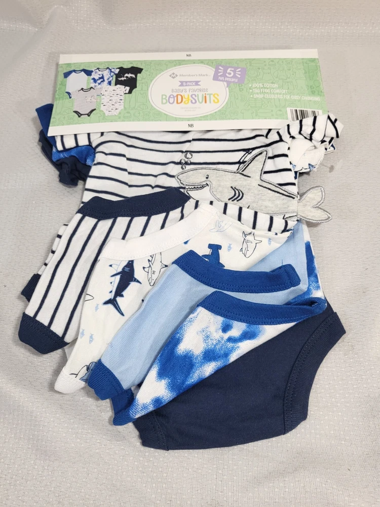 Members Mark Baby Boy 5-Pack Cotton Snap Bodysuits Shark Sizes NB to 24M Shark 7 sizes to select from (Newborn, 0-3 Months, 3-6 Months, 6-9 Months, 12 Months, 18 Months, 24 Months) Super Soft Cotton Baby Boy Bodysuits 5 Pack: 5 short sleeve bodysuits Fabric: 100% Cotton 1x1 Rib Tag less Inner Label Available in assorted styles Wash inside out Machine Wash Warm with like colors